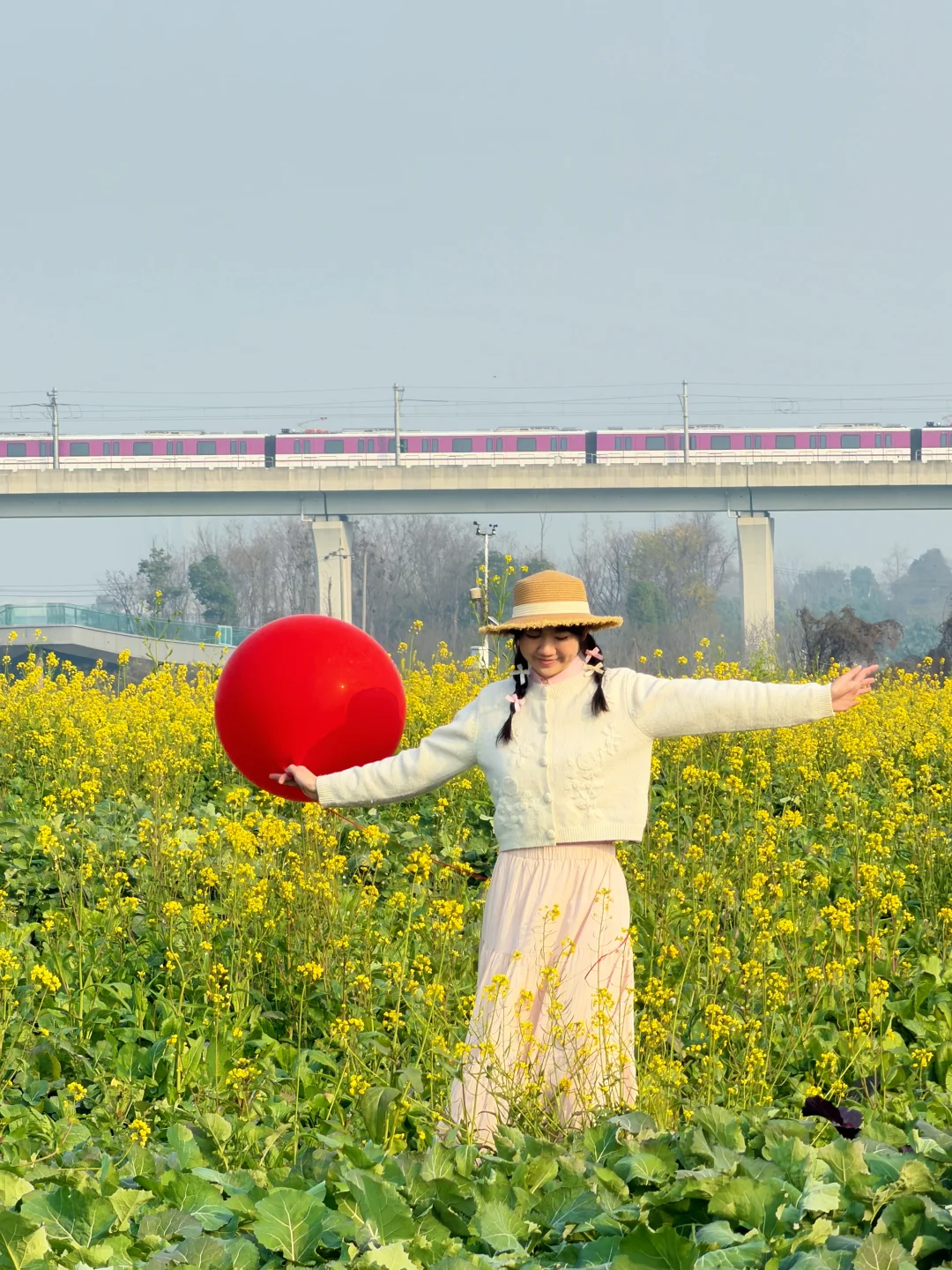 成都地铁直达 拍到了巨巨巨美的油菜花田 这应该是成都最早一批的油菜花了吧~ 春天和地铁同框的浪漫! 人少好拍速来速来!! · 📍 蜀道通衢 🚇地铁5号线幸福桥 B口左手直走100m 就在绿道旁边 🎫免费💰 · 📸拍摄小tips ✔️女生可以穿浅色长裙 和油菜花更适配 ✔️带一些小道具:草帽👒、书、编织包、气球……画面会更丰富 ✔️油菜花田里有一条小道,大家从这里走进去拍,花开的更好 ·