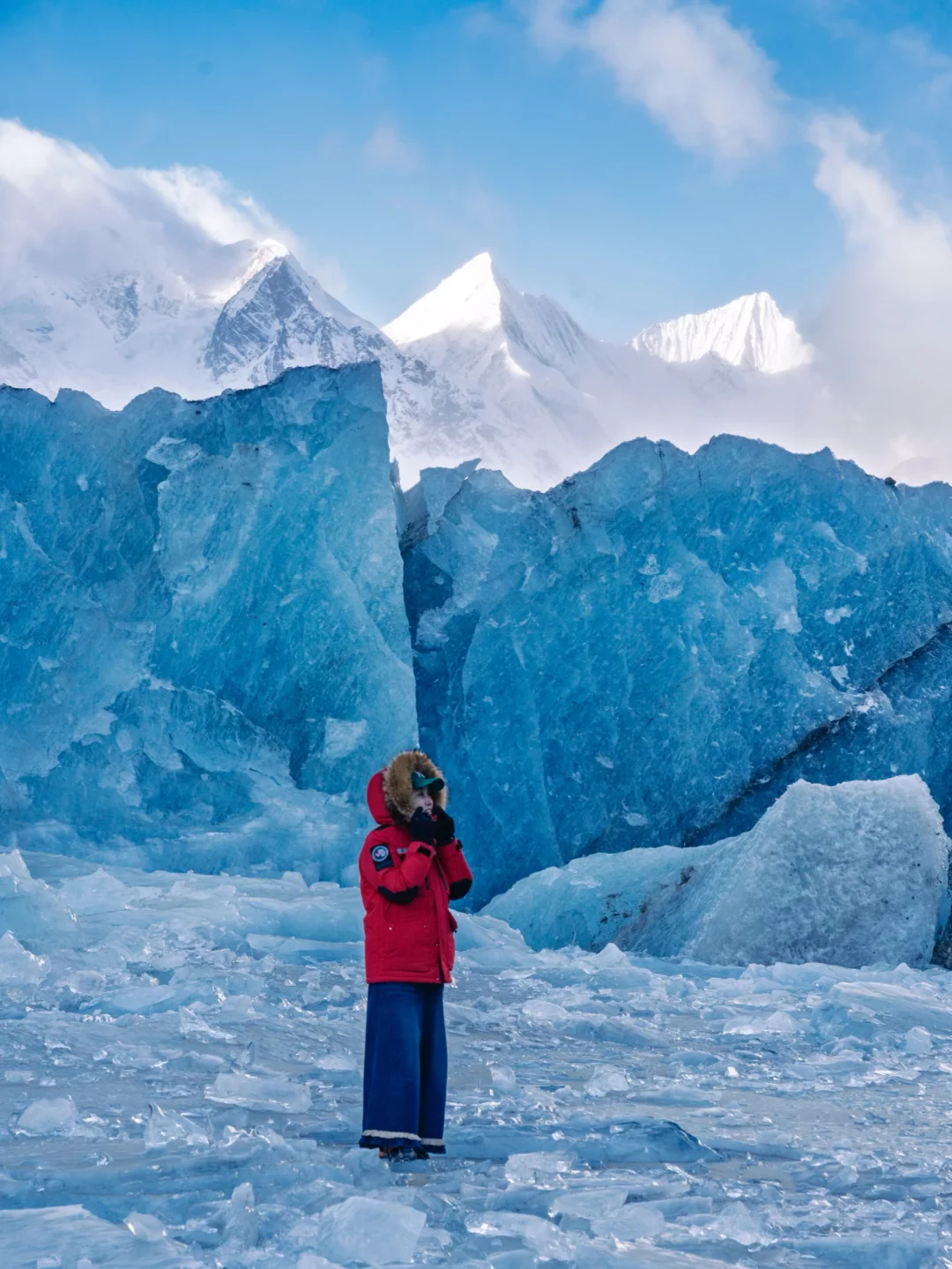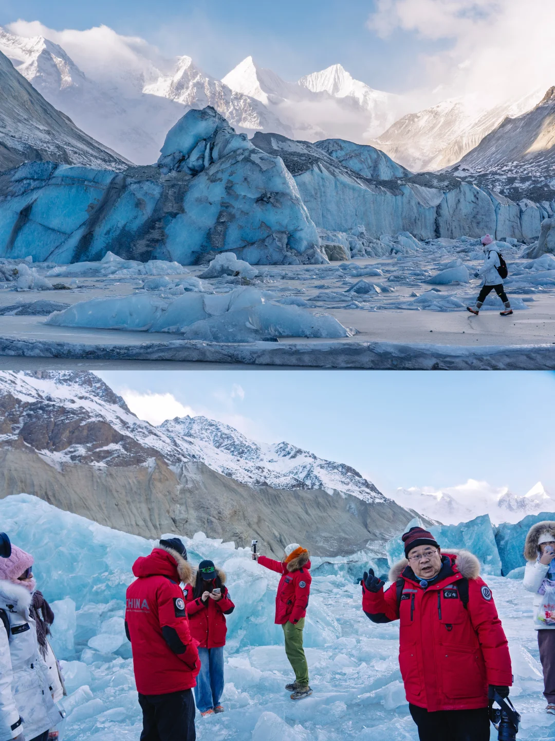 探水晶城堡般蓝冰洞,住萨普神山脚下