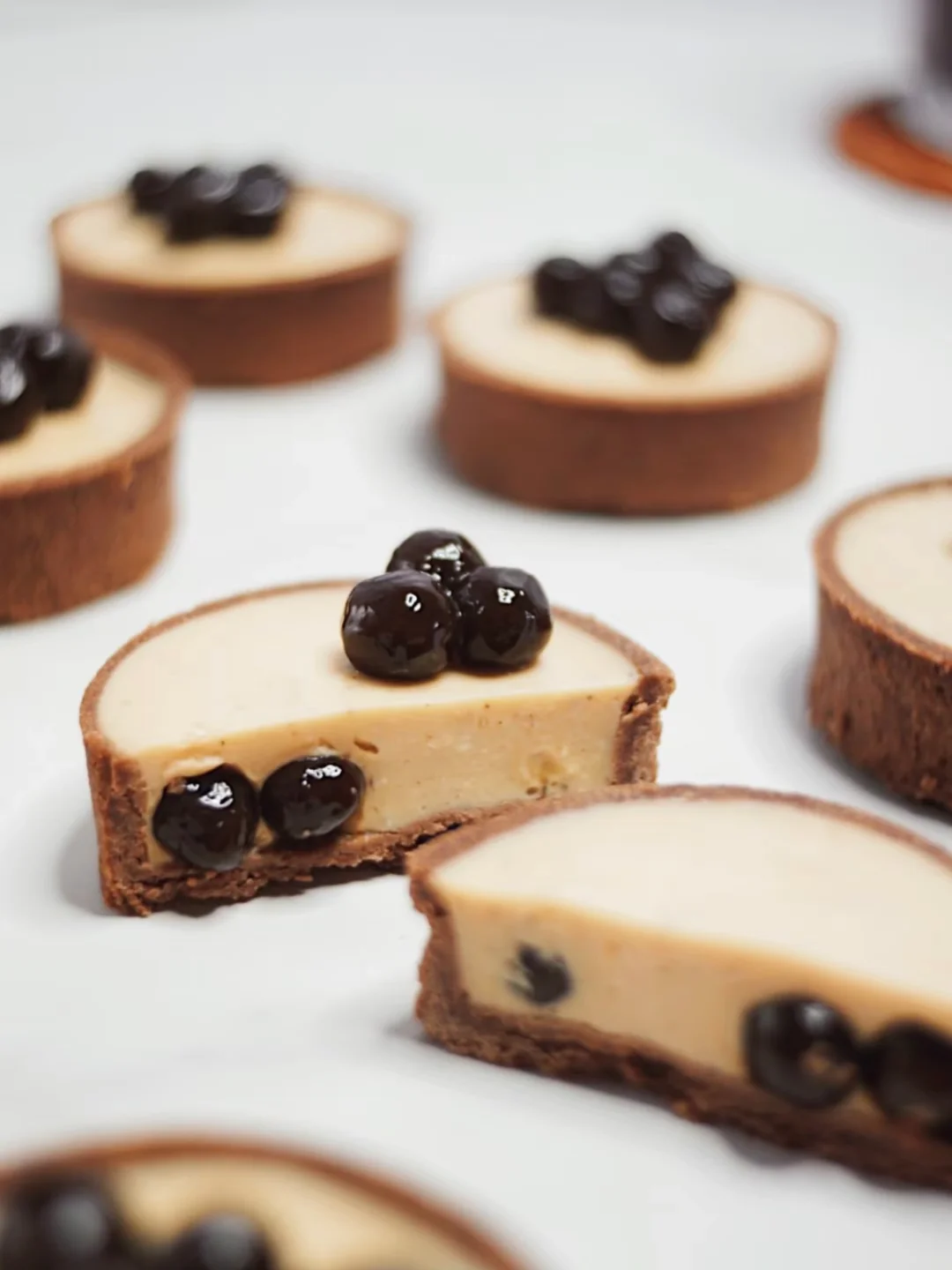 奶油奶酪50g|淡奶油50g|细砂糖15g|红茶2g|牛奶50g|吉利丁片5g|黑糖珍珠40g|可可挞壳