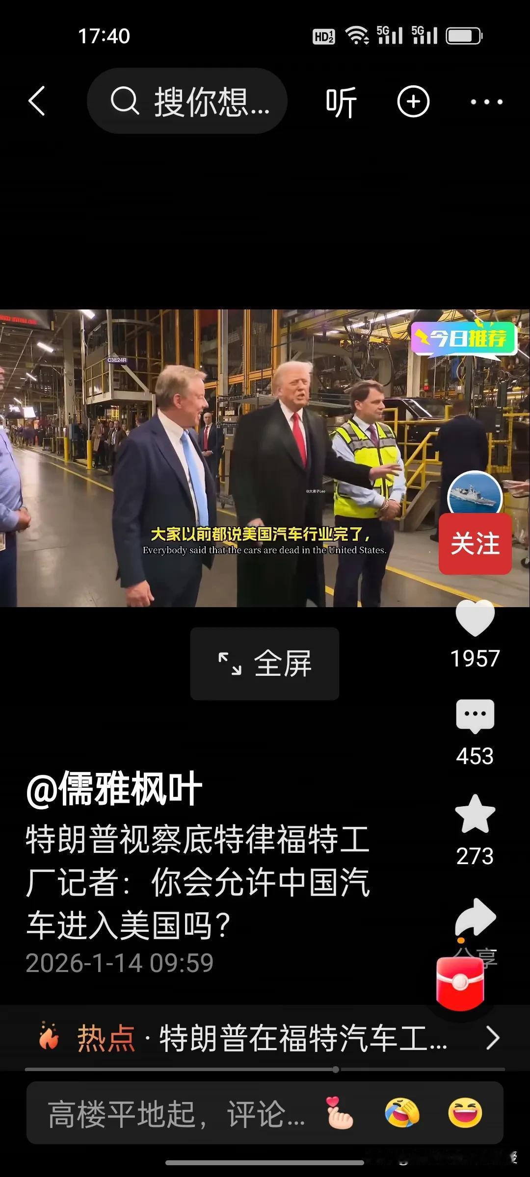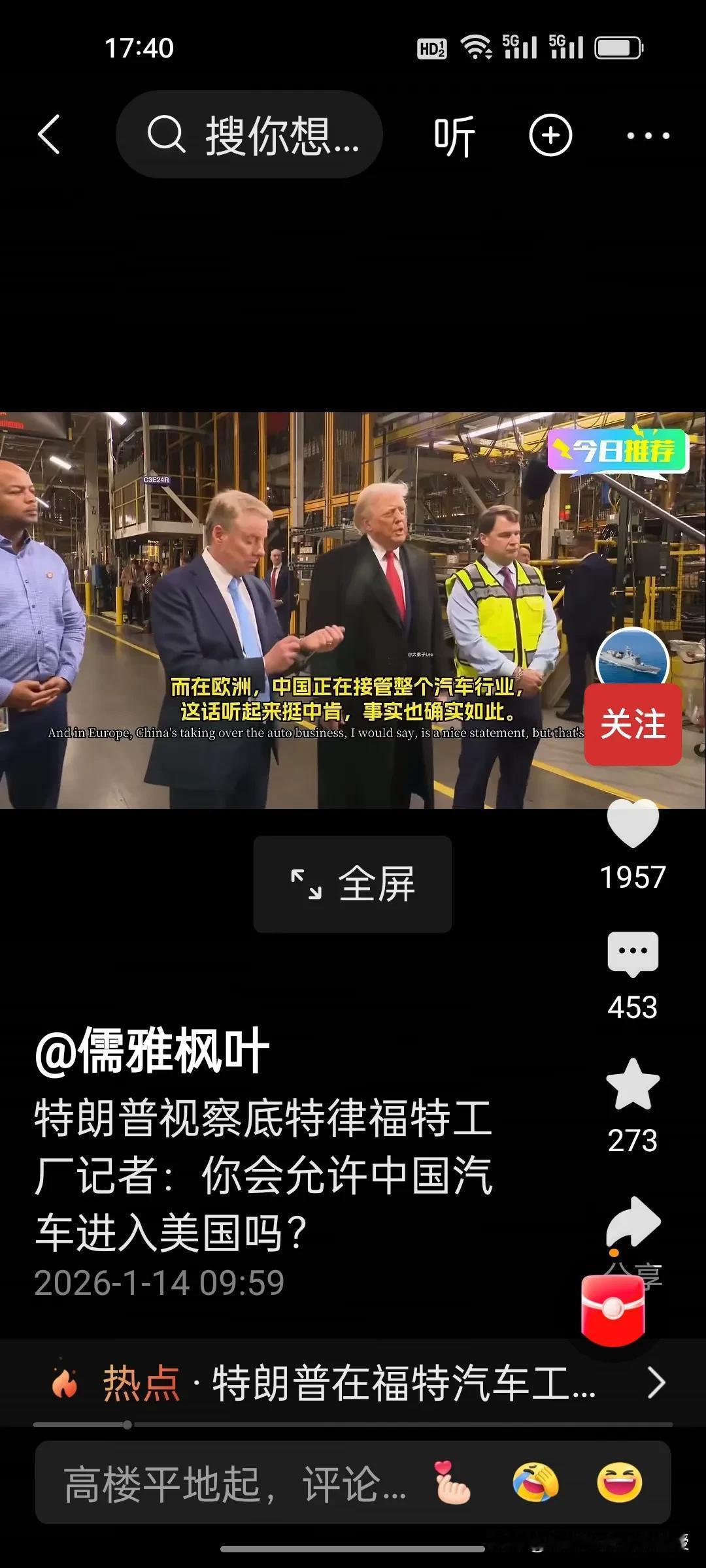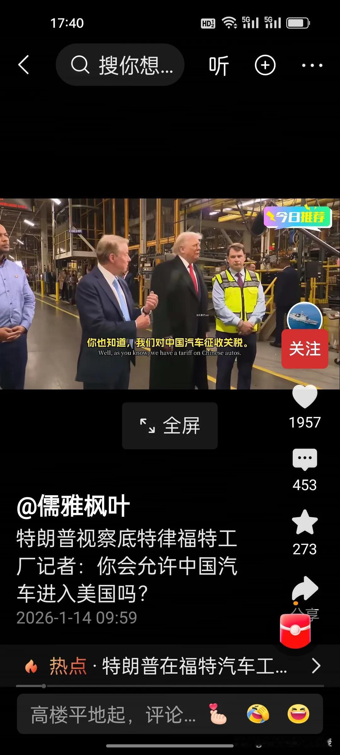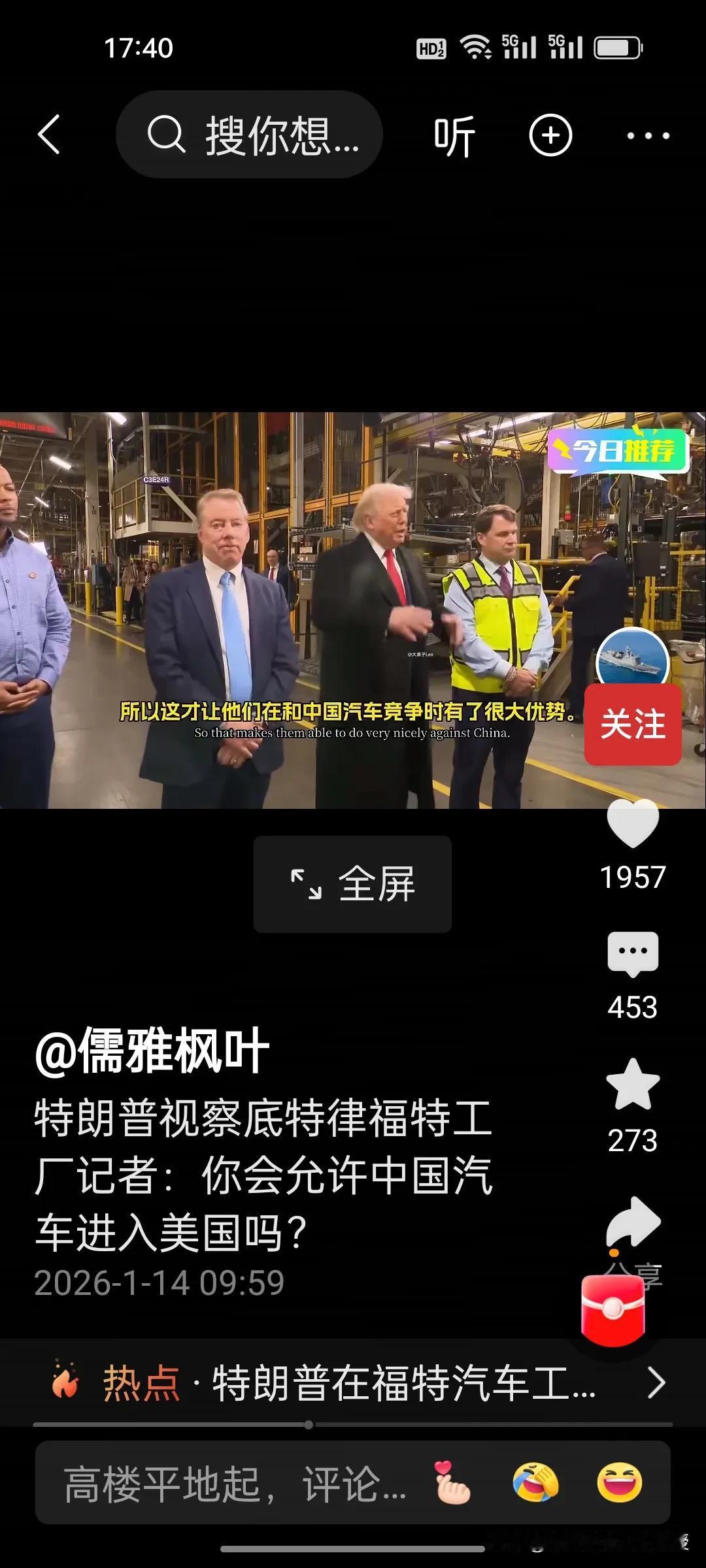 你会允许中国汽车进入美国市场吗?特朗普昨天在福特汽车工厂参观时,记者向他提问。