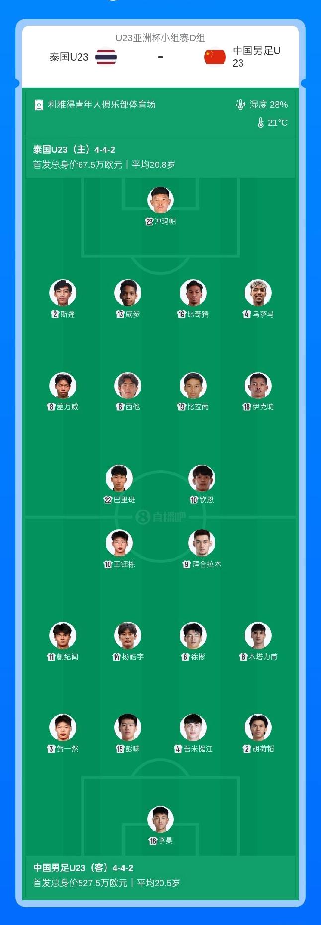 U23国足vs泰国U23首发出炉:王钰栋、拜合拉木领衔,胡荷韬、徐彬、蒯纪闻、杨皓宇先发 01月14日 19点30分,U23亚洲杯第3轮,中国男足U23对阵泰国U23,赛前双方首发出炉!U23国足方面,王钰栋、拜合拉木领衔,吾米提江、彭啸,蒯纪闻、胡荷韬、徐彬、杨皓宇悉数先发出战,杨希累积黄牌停赛