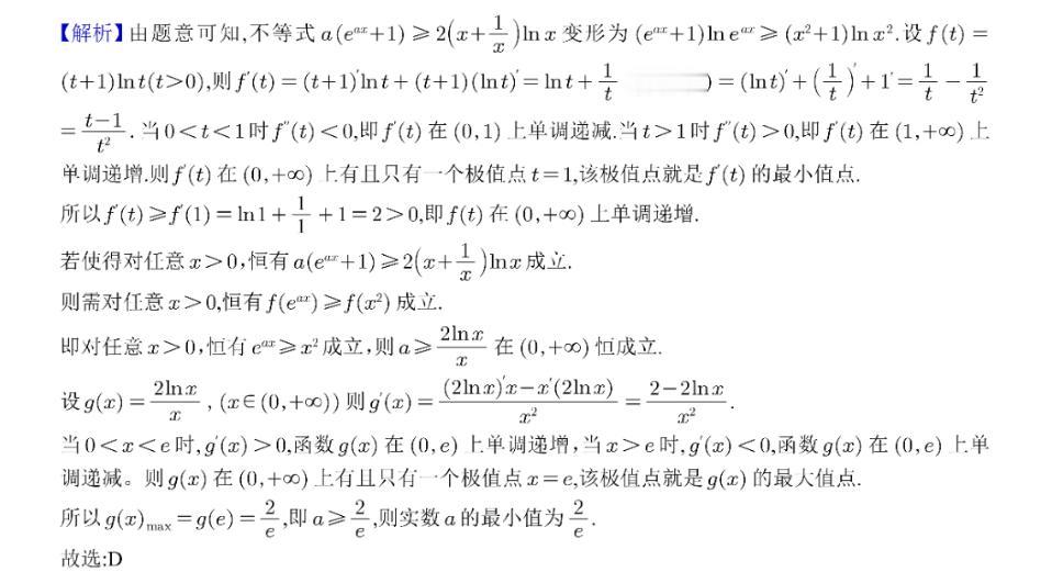 广东省华南师范大学附属中学2026届高三上学期综合测试(一)数学压轴单选题第8题,通过同构,借助函数的单调性,脱掉f符号,再分离参数,构造新的函数,借助函数的单调性,求出函数的最值,就可以求出a的最小值。