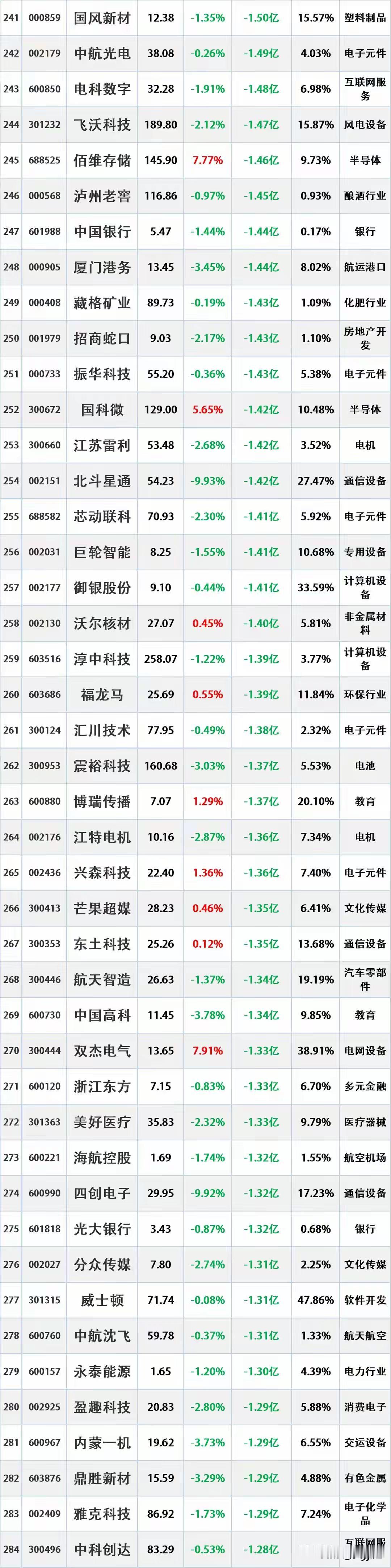 当心!1月14日,前3天主力大幅卖出的30名单金风科技:3日净流出69.5