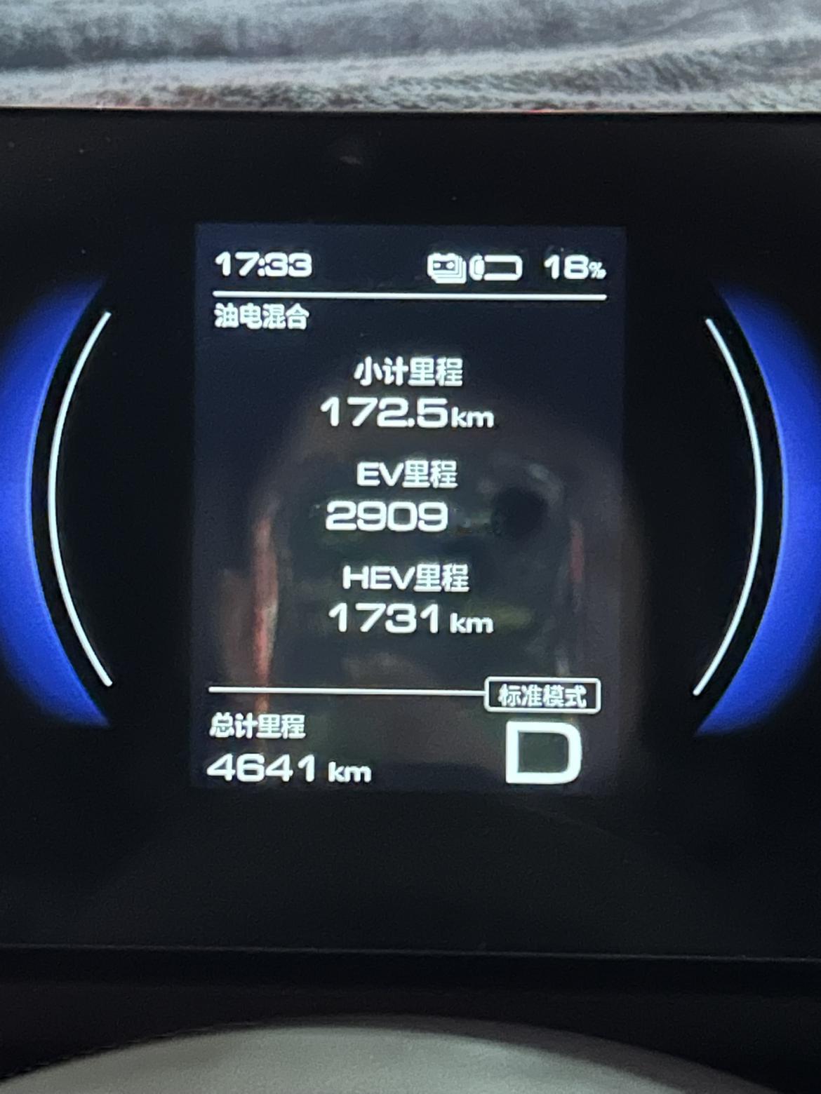 我的星光730提车已经快3个月了,总里程已经4600多公里了,看仪表里面,纯电里程2908公里,混动里程1731公里。纯电开的不少,现在开混动车就像开纯电,提速快还省钱,有没有和我一样的,没事就去充个电,哈哈!虽然纯电续航100公里左右,但用电开心里感觉很爽!星光730