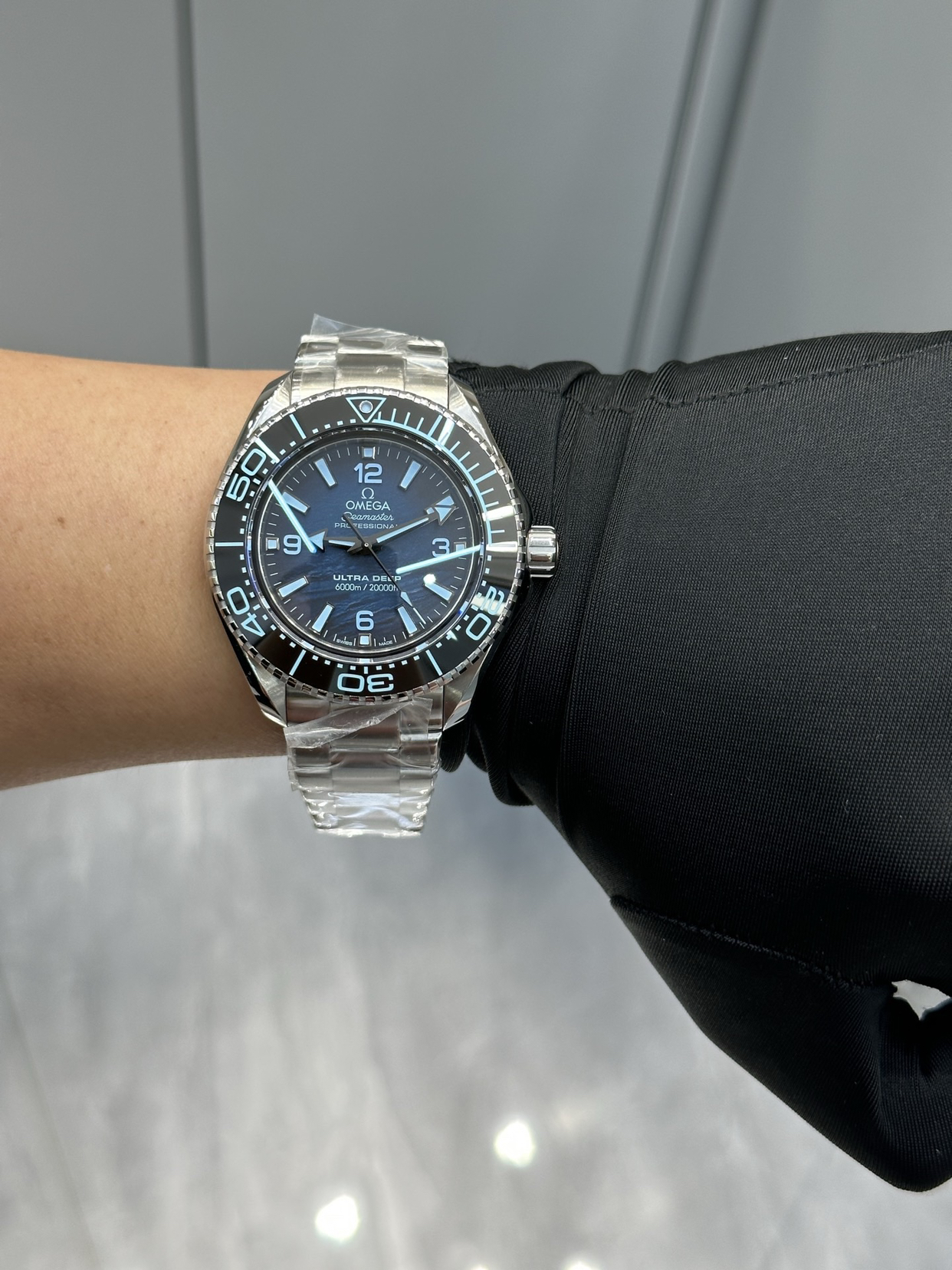 腕表采用独特的Moonshine™ 18K金材质制作指针和时标,这种欧米茄自主研发的合金比传统黄金色泽更持久,不易褪色。表壳直径41毫米,搭载8800至臻天文台机芯,具备55小时动力储存和150米防水深度。