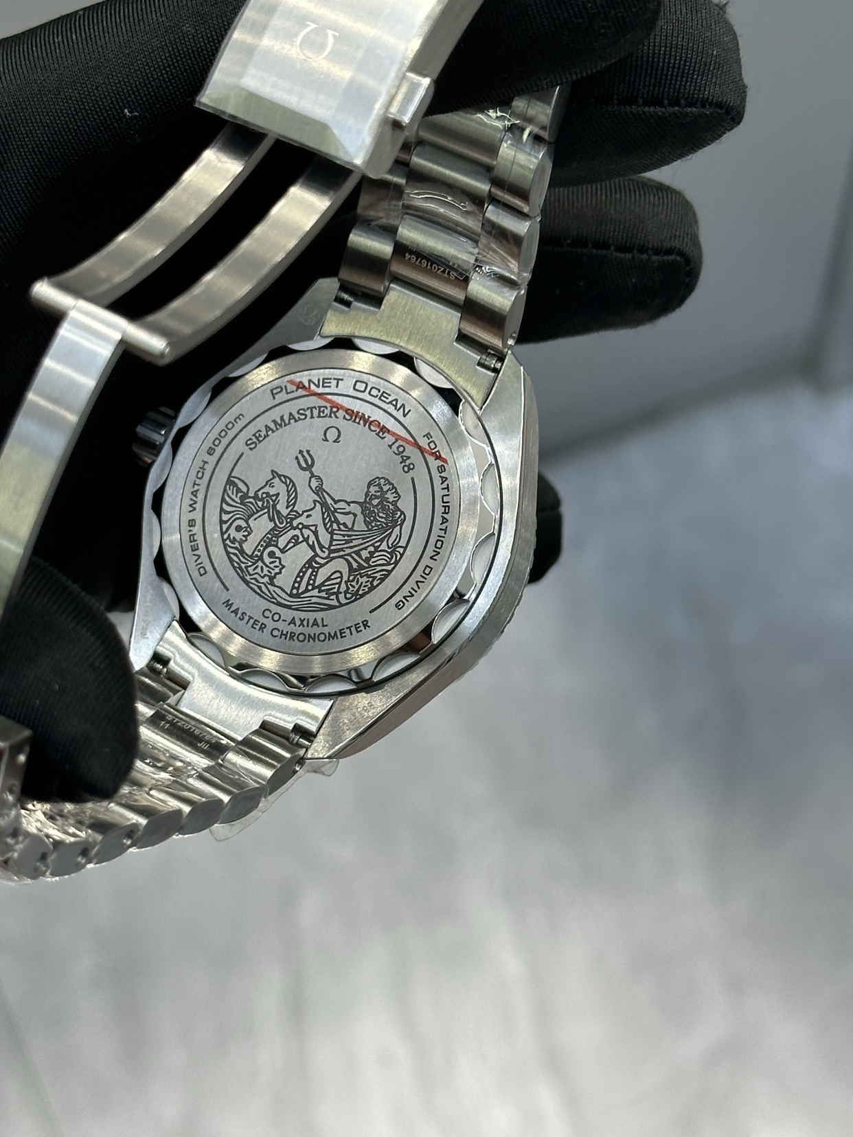 翻转腕表,透明的蓝宝石玻璃表底盖上,特别镌刻着“Seamaster 75th Anniversary”字样及海马徽章,让佩戴者在每一次抬腕间都能感受到这份特殊纪念的意义。