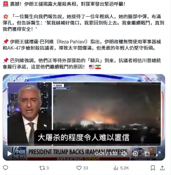 今日突发:川普表示伊朗问题将在24小时内出结果。也许,避免平民继续伤亡,是当务之急。伊朗大规性骚乱