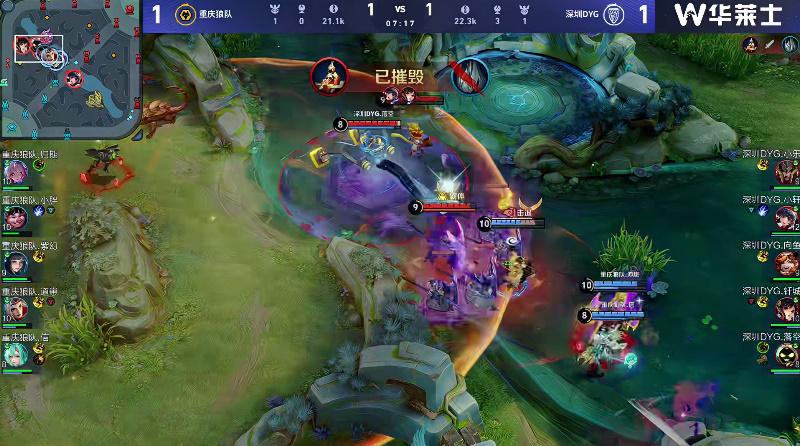 小胖八戒中左交完一技能被DYG三人留住,小乐蒙恬收下一血