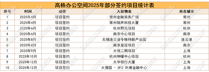 观点指数(GDIRI)1月9日,高格办公空间官微披露了2025年度总结。这一年里,高格新签项目超15个、签约面积超10万平方米。