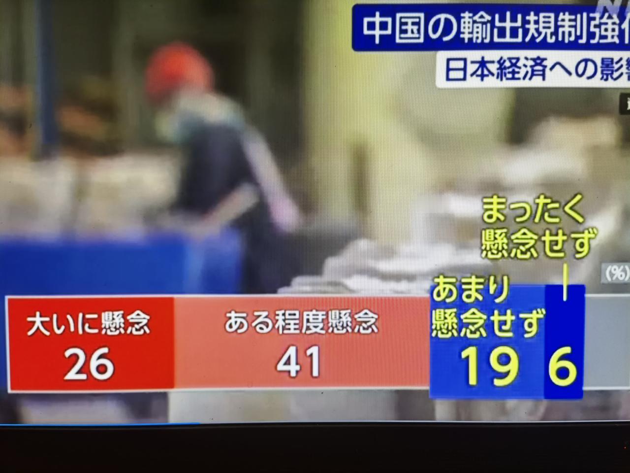 日媒:中国加强出口管制 “近七成民意调查担忧对日本经济的影响” 日媒1月14日报道, 针对中国宣布加强对日出口管制措施,NHK民意调查显示,近七成受访者表示担忧其对日本经济的影响。 NHK于1月12日前的三天内,采用“RDD”电话调查法(通过计算机随机生成全国固定电话和手机号码),对18岁以上民众展开调查。 调查覆盖2834人,获得1213人有效回答,占比43%。 关于中国政府宣布的加强对日出口管制——可能涉及高科技产业不可或缺的稀土等资源——当问及是否担忧其对日本经济的影响时: - “非常担忧”占26%, - “一定程度上担忧”占41%, - “不太担忧”占19%, - “完全不担忧”占6%。 担忧中国对日出口管制的日本人约67%,可见日本人还是了解高市早苗恶化中日关系对日本经济带来的实质性影响的。调查以随机抽样方式进行,其结果可以反映日本民众的普遍看法。 日本民众的担忧主要源于2026年1月6日中国商务部发布的公告。这份公告决定加强对日两用物项出口管制,禁止所有两用物项(指既有民事用途,又有军事用途或有助于提升军事潜力的货物、技术和服务)向日本的军事用户、军事用途及任何可能提升日本军事实力的其他用途出口。 根据中国外交部发言人的说明,此举是针对日本首相高市早苗公开发表的涉台错误言论而采取的反制措施。 虽然管制清单范围广泛,但日本业界和媒体最关注的是稀土等关键材料是否被纳入管制。日本在电动汽车、电子产品、国防工业等领域高度依赖从中国进口的稀土,尤其是在镝、铽等关键重稀土元素上,日本几乎100%依赖中国。 据野村综合研究所经济学家木内登英预测,若中国对日稀土出口限制持续3个月,将造成约6600亿日元的生产和经济损失,使日本年度GDP下降0.11%;若持续一年,损失将扩大至约2.6万亿日元,GDP下降0.43%。 管制公告发布次日(1月7日),日本股市应声下跌。日经225指数下跌超过1%,其中矿业、汽车、军工相关股票跌幅居前。 日本内阁官房长官木原稔表示该措施“绝对无法接受且令人深感遗憾”,已向中方提出抗议并要求撤回。但同时也承认,管制措施的具体适用范围“尚不明朗”,正在评估影响。 日本经济界对此感到紧张。据《朝日新闻》报道,相关协会会长表示在“极其艰难的情况下迎来了新的一年”。汽车、电机等行业的公司高管纷纷表示正在“密切关注事态发展”。 此次事件也引发了对日本供应链脆弱性的讨论。尽管自2010年后日本努力推动稀土来源多元化,对中国的依存度已从当时的约90%降至约60%,但在关键的战略资源上,依赖程度仍然非常高。 总而言之,目前日本近七成的民意担忧,直接源于中国针对日本涉台言论升级的两用物项出口管制。市场波动和行业焦虑已经显现,而经济影响的程度最终将取决于管制范围、执行力度及持续时间。
