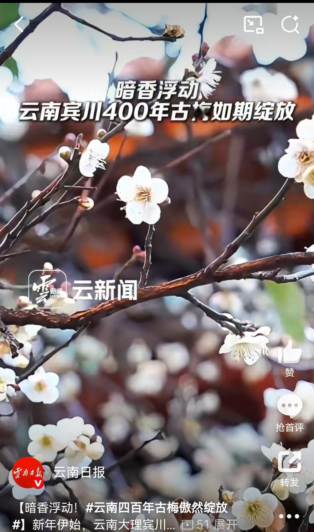 新年去云南大理宾川鸡足山游玩,真的被那株400年古梅惊艳到了! [送自己一朵花][送自己一朵花][送自己一朵花]苍劲的枝头繁花似锦,洁白的花朵层层叠叠,像雪花般缀满枝头。微风拂过,花蕊轻轻颤动,却依旧傲立在枝头,仿佛在诉说着岁月的故事。 🌸🌸🌸这古梅与古寺的红墙相互映衬,构成了一幅绝美的冬日诗意画卷。在这喧嚣的世界里,能看到这样的美景,内心瞬间平静下来。400年的时光,它见证了多少历史变迁,依然年年如期绽放,这份坚韧和美丽,让人不由得心生敬畏。下次有机会,我还想再来看看。