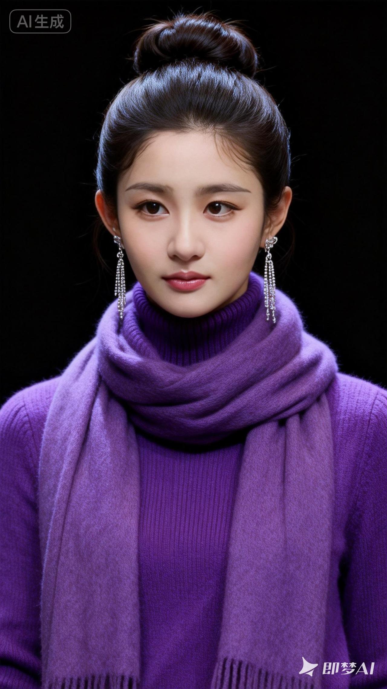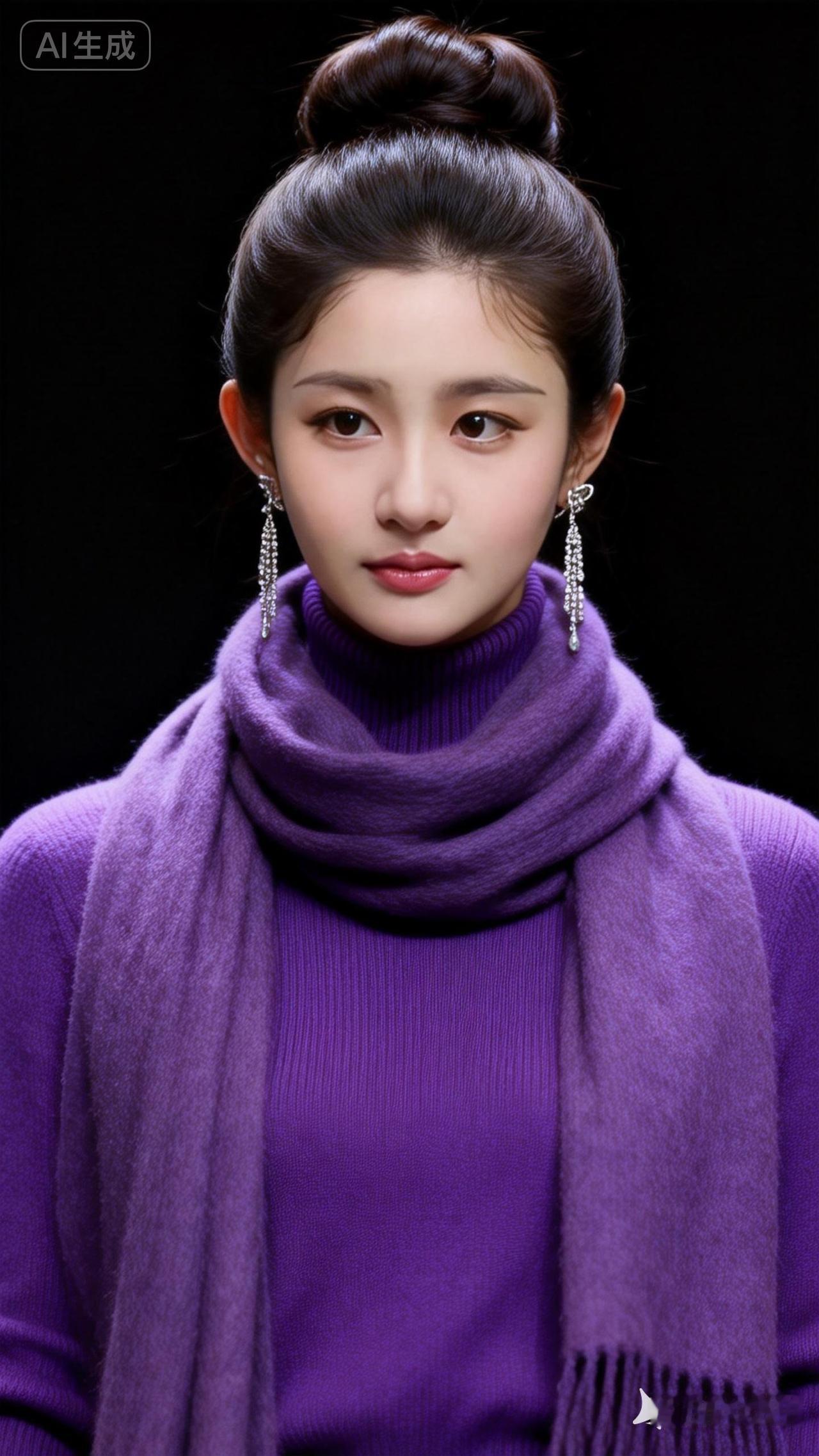 紫色毛衣搭配优雅围巾,尽显冬日温暖与时尚!🌟✨