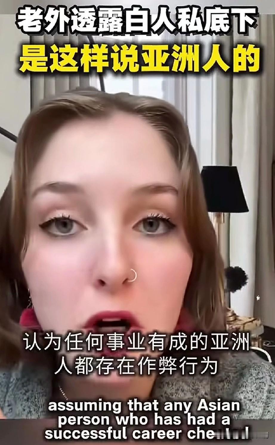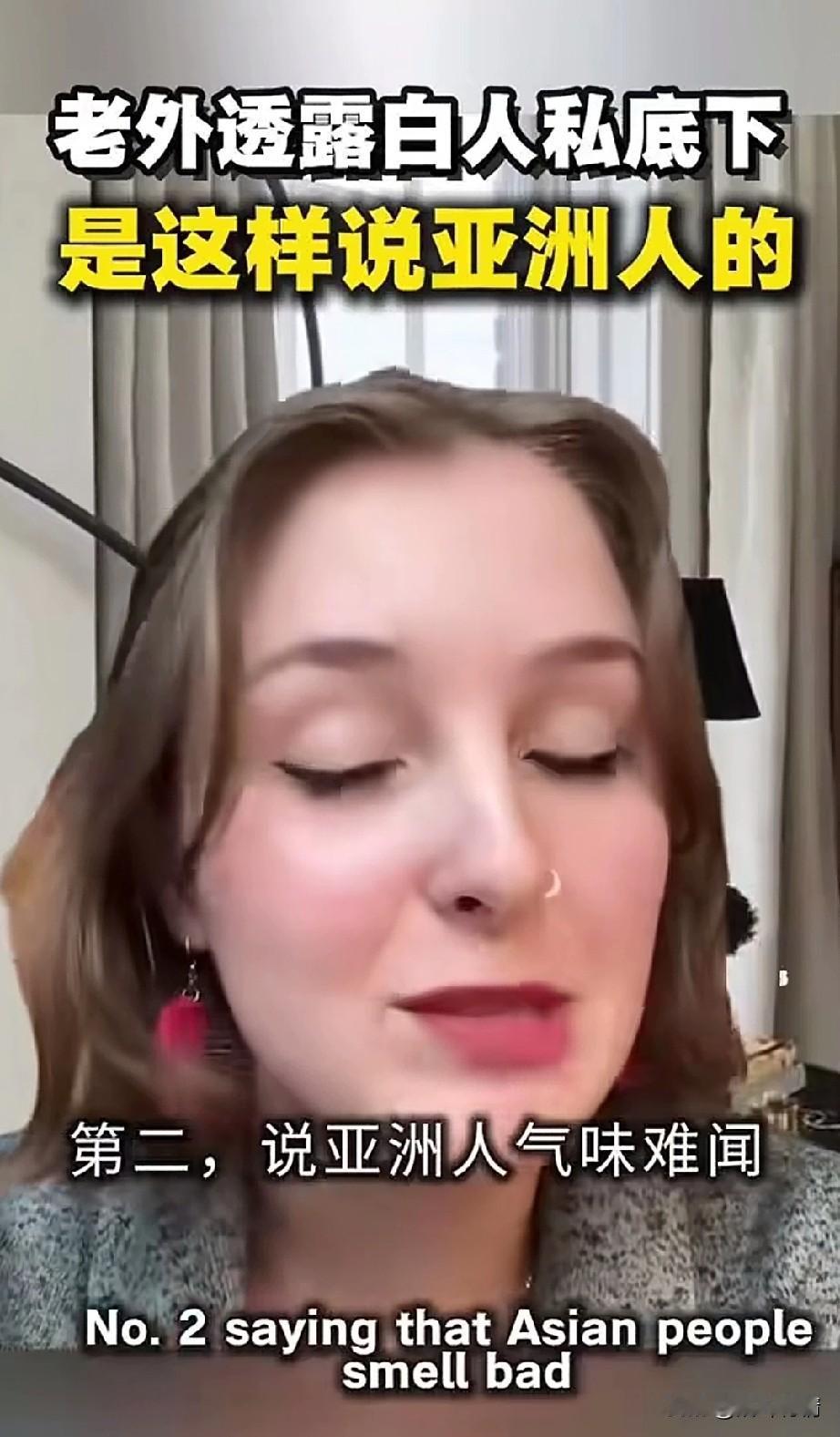 一位外国美女透露了, 外国白人私下是这么说亚洲人的? 她总结出了三条, 可以说是老外真实的想法, 第一白人抵制中餐, 他们认为中餐就是乱炖, 并且味道非常的奇怪, 不符合他们喜欢吃甜食的味蕾, 第二亚洲人气味难闻, 他们认为亚洲人身上的味道不好闻, 没有他们身上的味道好, 而且亚洲人身上不喷香水, 让他们有点儿难以接受, 第三他们觉得亚洲人的聪明就是作弊, 他们认为那些亚洲人都是被训练的很聪明,他们本身并不从, 要不然那么多发明都是国外的, 诺贝尔奖都是老外获得! 美女总觉得这3点感觉有点奇怪, 我要去反驳这3点, 第一,明明国外没有美食, 甚至很多老外都说国外是美食荒漠, 很多老外都说夜晚的国外只有汉堡,薯条,炸鸡,披萨别的实在没有, 不像中国有各种各样的事, 这些难道是讨好中国人的视频吗? 第二,明明老外身上的味道特别难闻, 这就是他们使用香水遮盖的联盟了, 很多人都说老外身上有狐臭, 并且大家也都证实了, 为什么他们还这么自信? 难道是自欺欺人吗? 第三,老外的数学真的很差, 他们确实是算不明白几乘几的数字, 这些都是被证明过的, 亚洲人的大脑进化确实很厉害, 也是有科学依据的, 这些都是毋庸置疑的, 由此可见是那些羡慕嫉妒恨的老外, 故意传播这种错误的认识, 相信只要来过中国的老外, 他们都会去反驳这些, 毕竟这些才是事实! 大家觉得亚洲人是不是比欧洲人聪明? 文化 老外说中国人 老外评价中国人 白人老外 欧洲白人