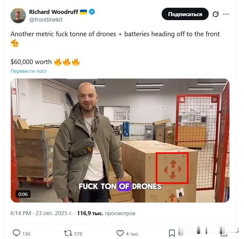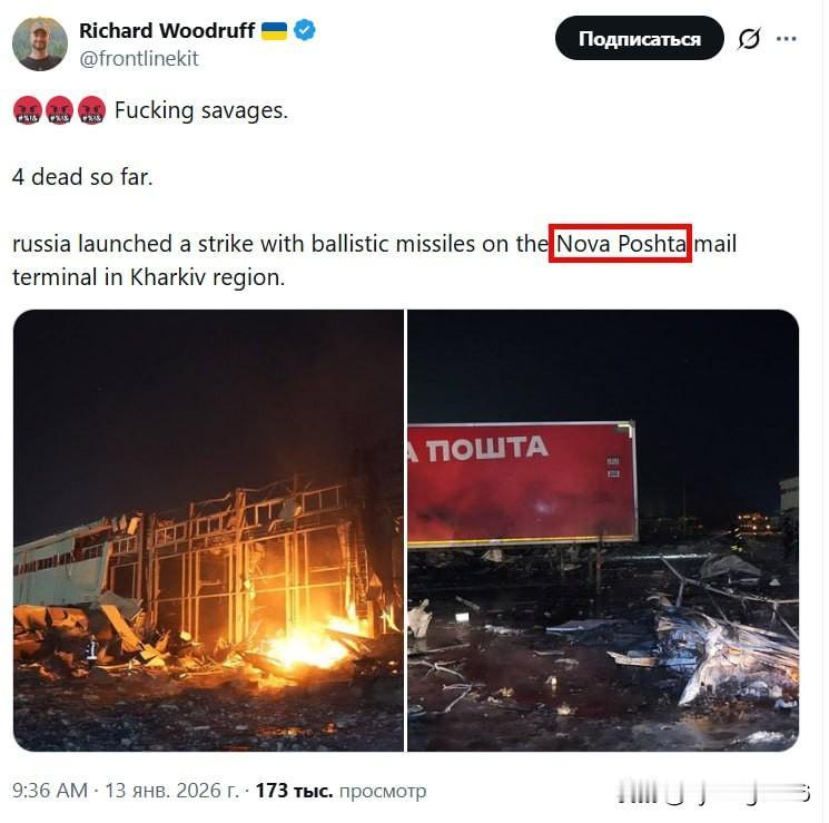 🇬🇧🇺🇦英国志愿者理查德·伍德拉夫先是经由新邮政(Nova Poshta)向乌克兰武装部队运送拦截无人机,随后又抱怨其货运站被俄罗斯空袭摧毁(图四)。 显然,这名男子提供的无人机,以及其中牵强的因果关系,并非此次袭击的唯一借口。自二战开始以来,乌克兰新邮政在乌克兰武装部队的后勤保障中扮演着关键角色,并多次参与军事物资的运输和储存,使其货运站成为俄罗斯空袭的常客。