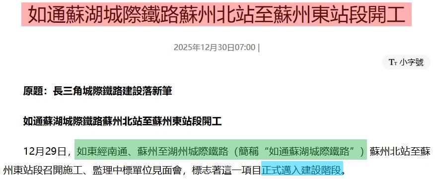 如通苏湖城际铁路,南通段何时能动工? 上个月底,苏州发布的信息,如通苏湖城际,在苏州北站和苏州东站之间的一段,正式进入了建设阶段,这条从南通如东通达湖州的城际线,迈出了新的一步。 更早些的时候,湖州段的施工进展显然更快一些。包括其中几个重点的大桥,如沪苏湖特大桥、八里店特大桥等工期进展顺利;加上有一些新的站点已经进入了封顶阶段。 这就挺让人羡慕的,或许在未来,这条城际线路,在长江以南的部分,会率先通车。 现在让人关心的是,南通段、如东段何时能够正式动工?规划方案现在可以确定已经通过了,这条未来如东最重要的铁路,让很多人寄予了厚望。 不过有一种说法,要等到南通新机场正式确定动工之后,南通段才有可能施工,是这样吗?
