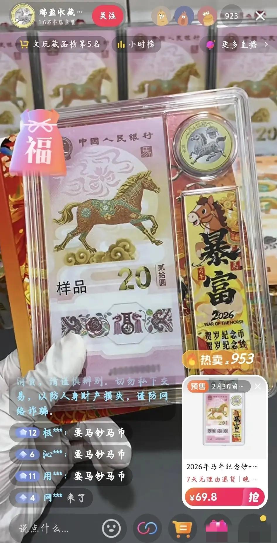 1月13日晚,马年纪念币、纪念钞开启预约通道,海量用户同步涌入致银行App卡顿闪退、验证码延迟频发。不少网友吐槽还未填完信息,1亿枚/张的发行量便已售罄。与此同时,二手平台热度飙升,纪念钞单张溢价超一倍,特殊号码更是身价倍增,其火爆行情正是文化收藏与节日消费需求的双重体现。