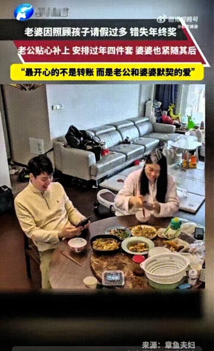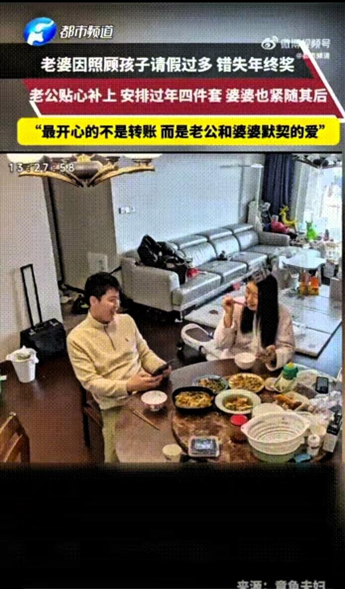 扣的年终奖,被老公和婆婆的爱填得满满当当! 谁懂啊!宝妈因为带娃频繁请假被扣年终奖,随口跟老公吐槽一句,结果被全家的暖心举动治愈了 江苏这位宝妈本来心里有点憋屈,吃饭时轻描淡写提了一嘴扣钱的事,压根没想着要什么补偿。没想到当天中午,老公就转来2000块,备注写着“补你的年终奖”。之后老公又分三次转来2000块,每次都特意叮嘱她,这笔钱用来做头发、做美甲,剩下的添身新衣服、买个喜欢的包包,把“过年四件套”安排得妥妥帖帖。 正满心欢喜的时候,手机又弹出转账提醒,原来是婆婆也转来了2000块,没说什么客套话,就一句“辛苦啦,买点自己喜欢的”,朴实的话语里满是实打实的心疼。 这件事被分享到网上后,网友们纷纷感慨她嫁对了人。但我觉得,这根本不是钱多钱少的事,而是她的委屈被看见,她的不易被体谅。 多少宝妈都在经历这样的困境,一边是需要投入精力的工作,一边是离不开照料的孩子,为了平衡两者,不得不做出让步,受了委屈也常常自己消化。她们最怕的不是吃苦受累,而是自己的付出被当成理所当然,那些默默的妥协没人在意。 这位宝妈的幸运,从来不是嫁进了多有钱的家庭,而是她在家庭和职场之间奔波的疲惫,被老公和婆婆稳稳接住了。公司扣掉的是一笔年终奖,可家人补上的,是藏在细节里的偏爱和尊重。职场上的小遗憾,在家人的温暖里瞬间就被抚平了。 说到底,好的家庭从不是大富大贵,而是有人把你的付出放在心上。这样互相体谅的日子,才是婚姻最踏实的模样。