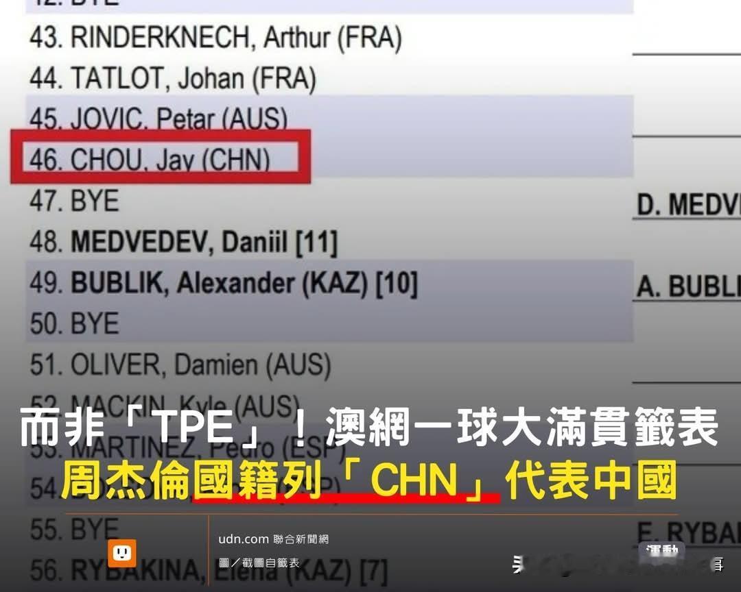 周杰伦国籍标中国让岛内蓝绿媒体集体破防!叹为啥连中华台北都不选! 今天澳网公开赛