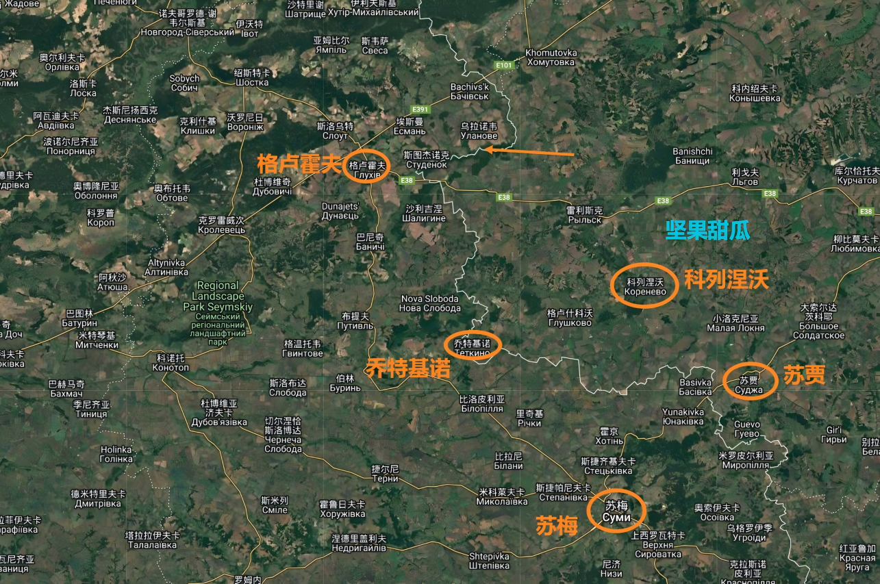 苏梅方向 ,北部集群估计觉得太冷了,在这里热了热身,突然从库尔斯克冲过边境,解放了苏梅边境村科马罗夫卡。
