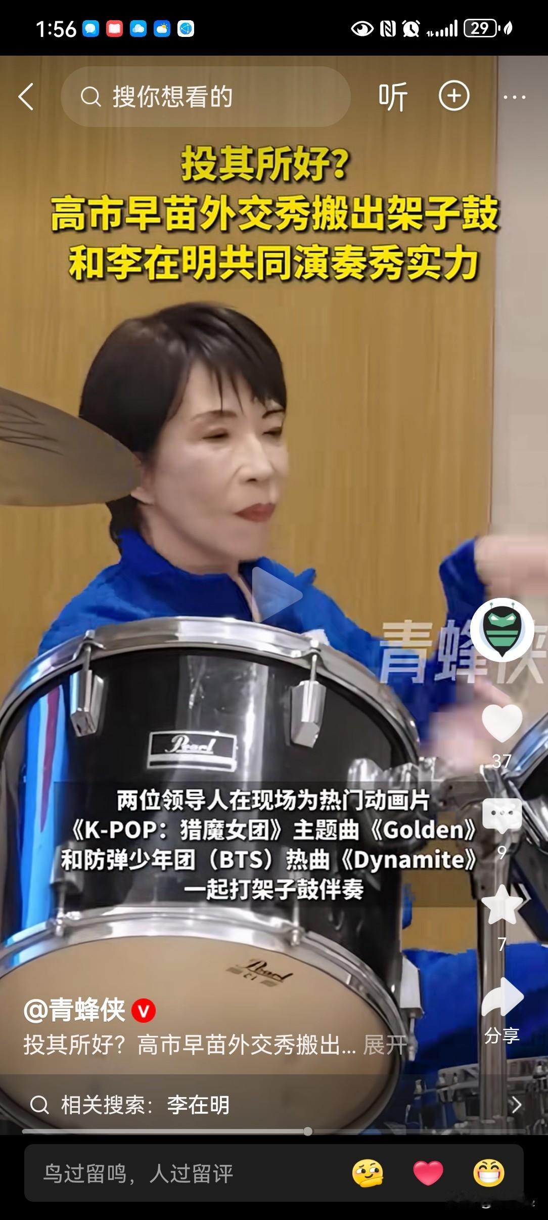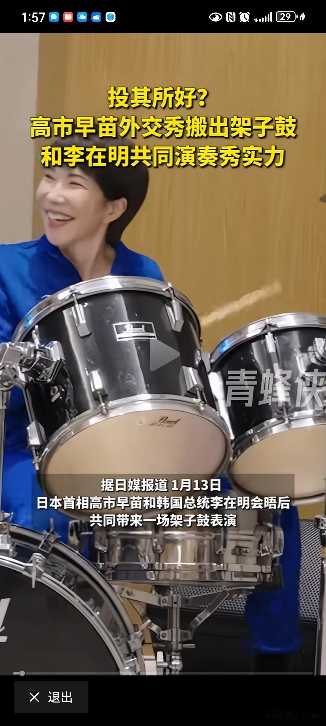 高市早苗,作为日本第一女鼓手,为韩国总统李在明“献丑”了。 高市早苗 韩国