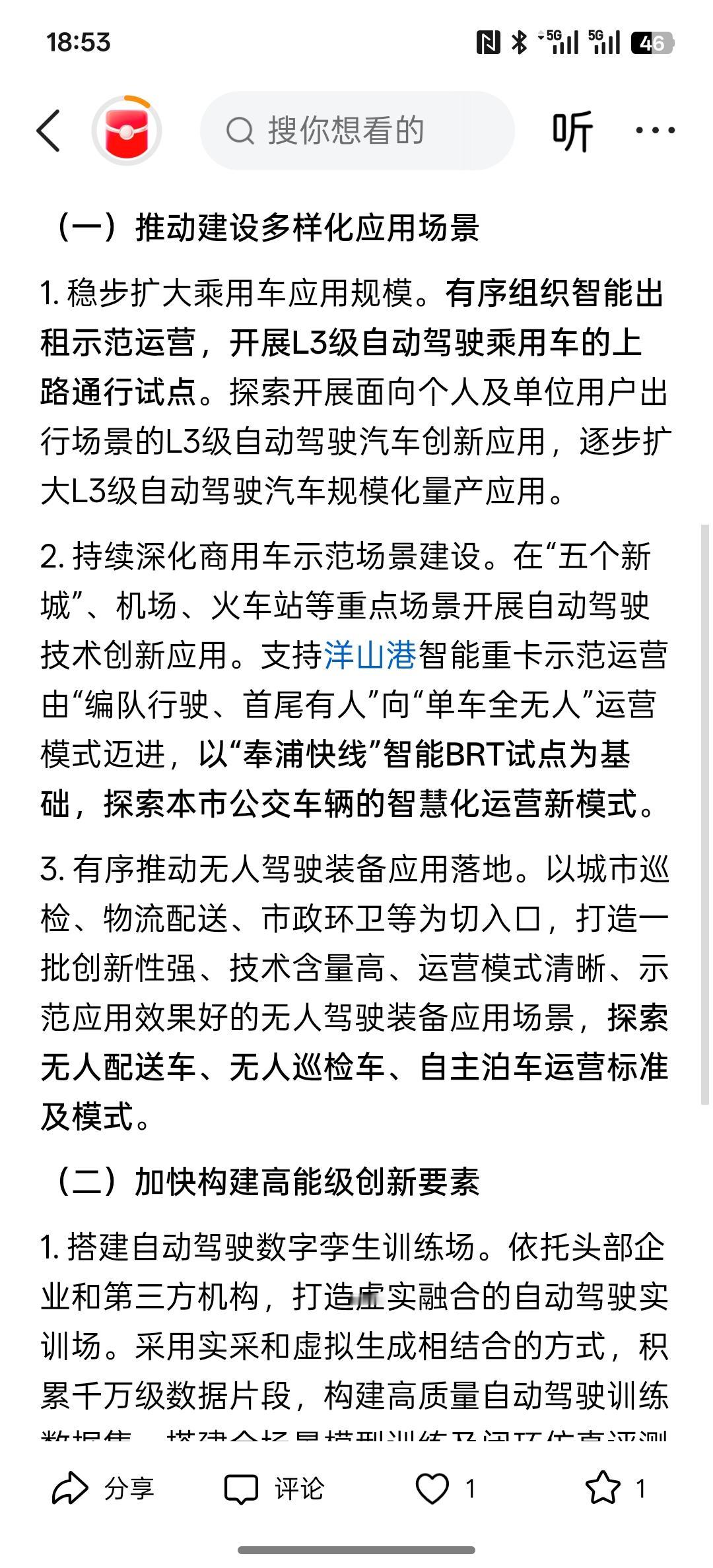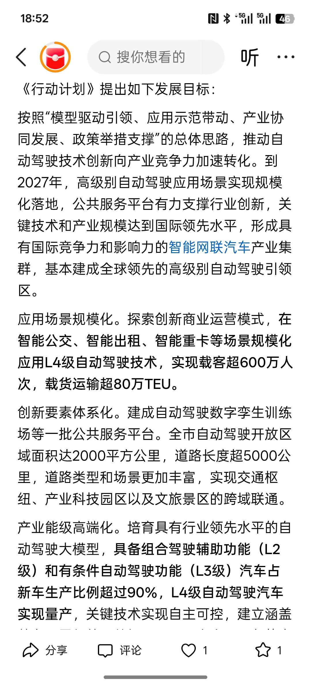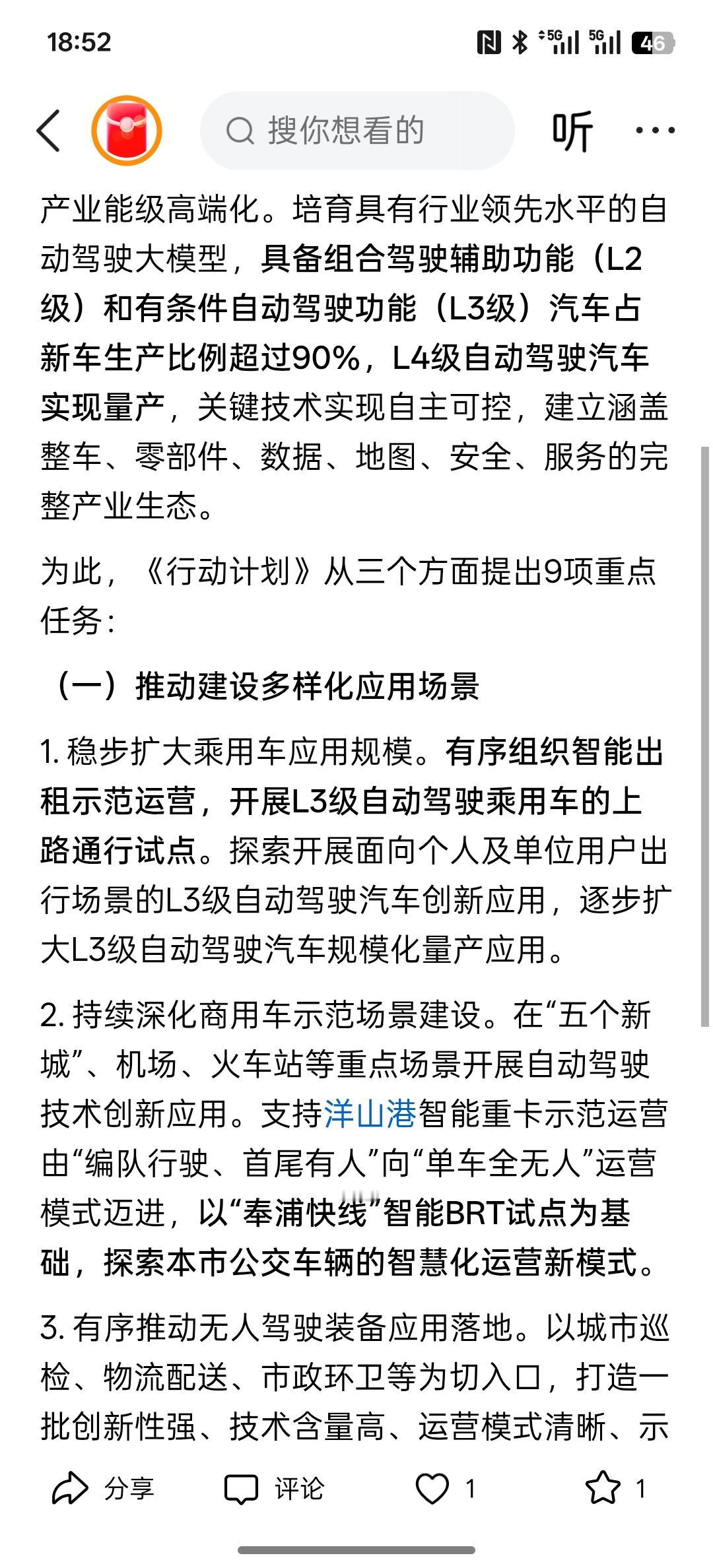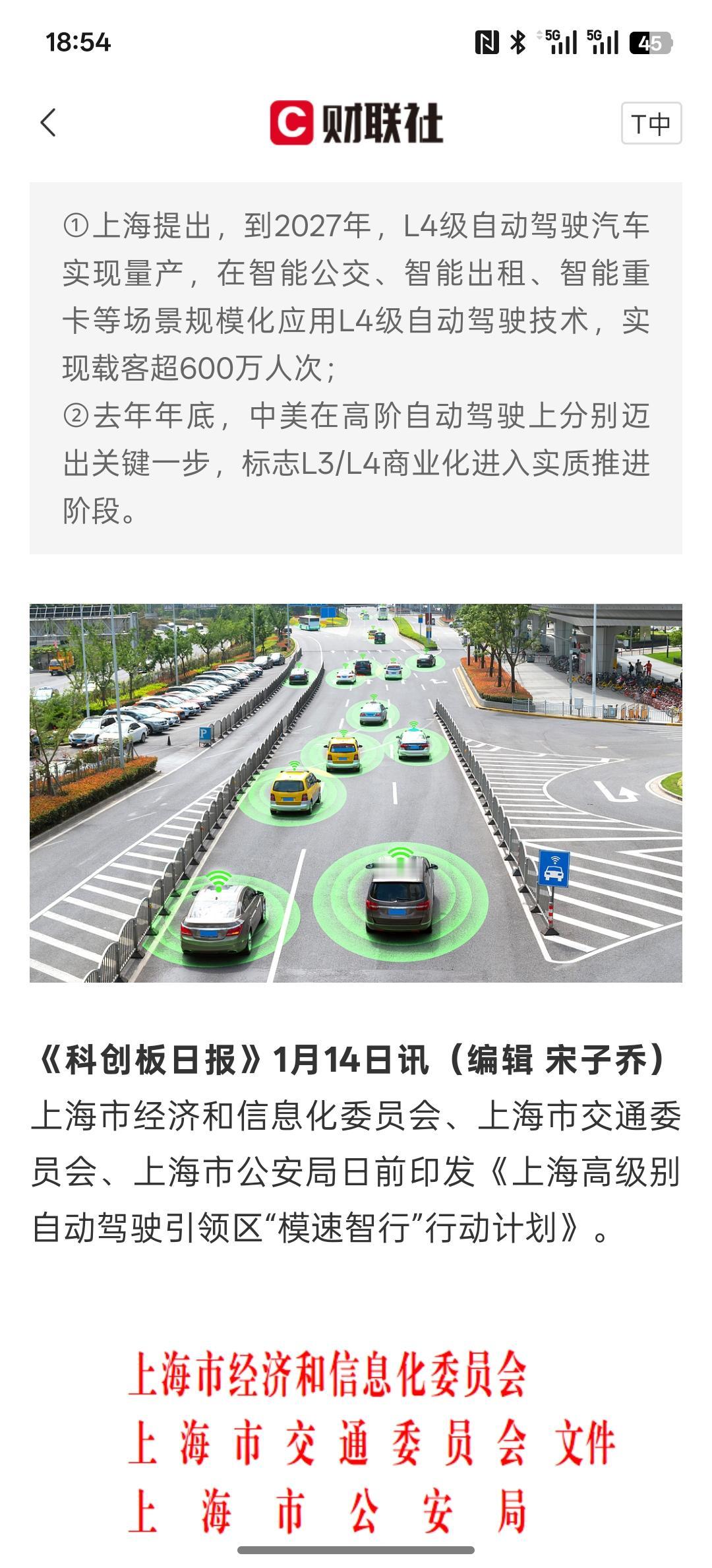利好消息,上海:到2027年 高级别自动驾驶应用场景实现规模化落地,关于自动驾驶技术商用落地!后续可能会扩大应用场景的落地!上海已经也在加速推动自动驾驶技术应用场景相应落地,而且有序推动无人驾驶技术商用落!L4自动驾驶技术,而上海也在加速打造相关产业应用场景落地,同时,要支持车载大算力的芯片技术突破,包括车载操作系统的发展!因为这一场自动驾驶技术,中国与美国之间相互都在加速发展自己的产业!国政府也放宽了自动驾驶技术的发展路径,而美国每年要提高自动驾驶技术生产的上限! 上一次也在积极的推动自动驾驶技术发展!连北京,重庆已经实现L3自动驾驶技术有条件的落地!人工智能的快速发展,智能驾驶我将与AI结合! 美国英伟达也在进入自动驾驶技术行业!