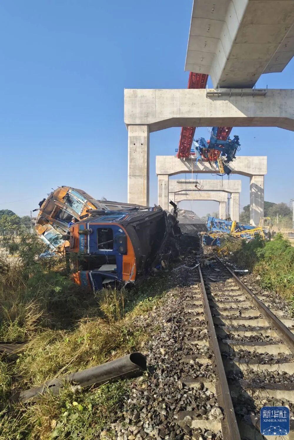 据报道,事发时,一台在离地约10米的高架结构上作业的起重机突然倒塌并坠落,其钢结构砸中一列高速驶过的曼谷至乌汶府快速列车,造成列车脱轨并起火。