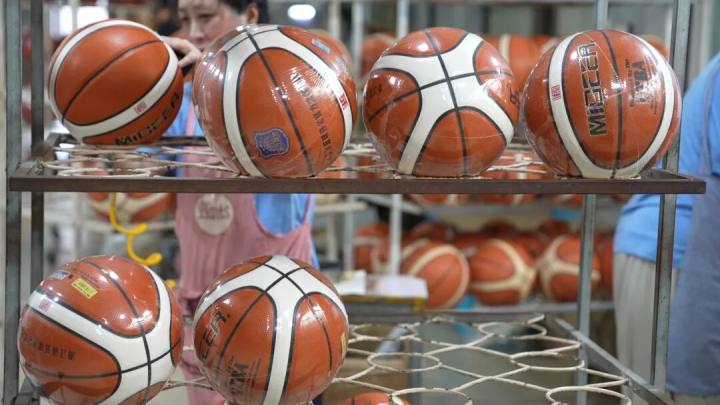 “‘浙BA’一开赛,我们车间就没歇过!”在生产车间,车间主任陶飞指着流水线上不断移动的篮球介绍道,“生产量比之前翻了4倍,‘浙BA’专用球、纪念球订单排得满满当当。现在工人们三班倒,机器24小时转,这样的热闹劲儿,我干这行这么多年还是头一回见。”