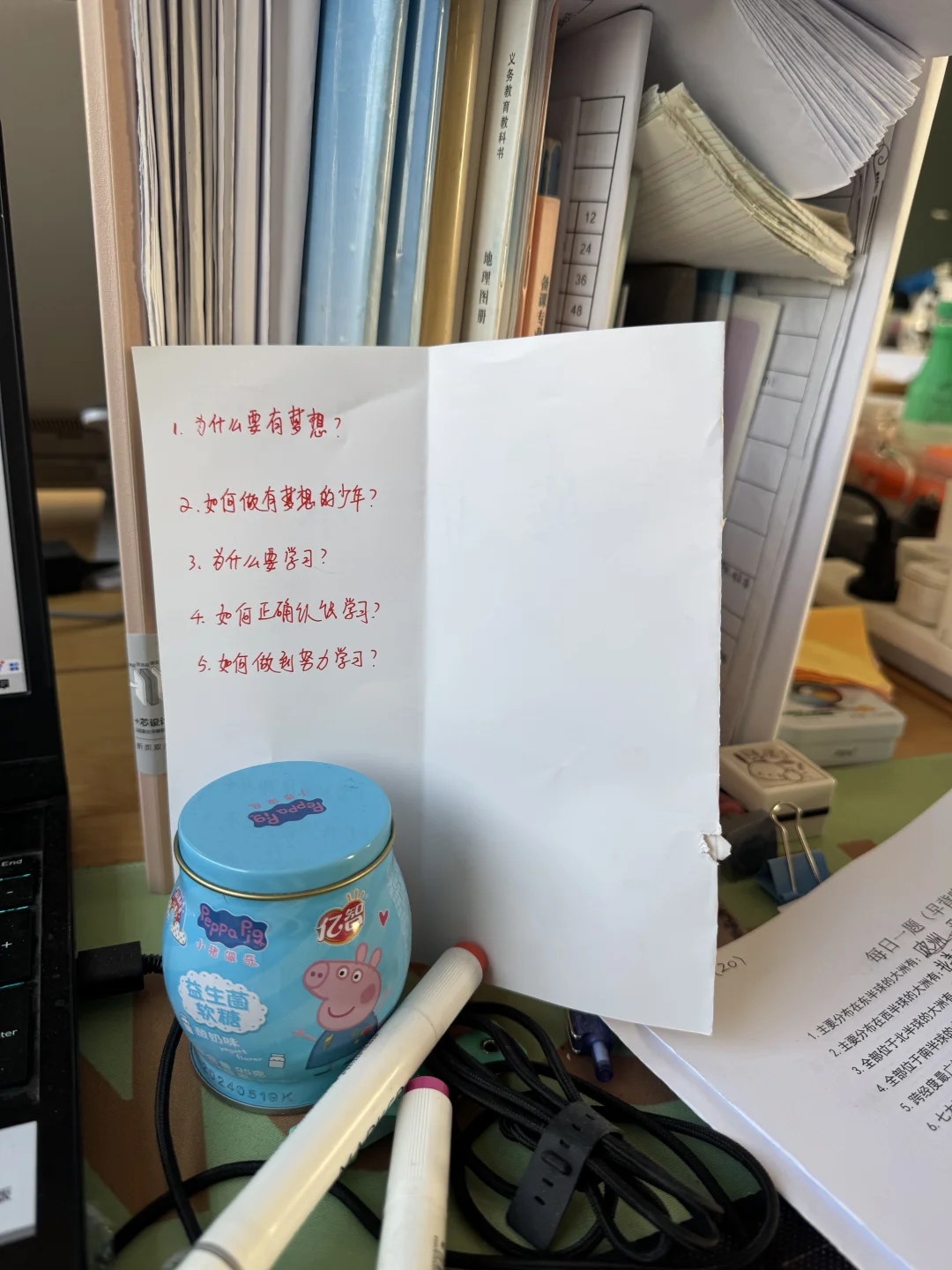 班主任的办公桌应该是最乱的吧,啥都有,写不完的材料,填不完的表格,教育不完的学生,整改不完的卫生,默不完的知识点,做不完的题目————最怕期中期末考试,太忙了!