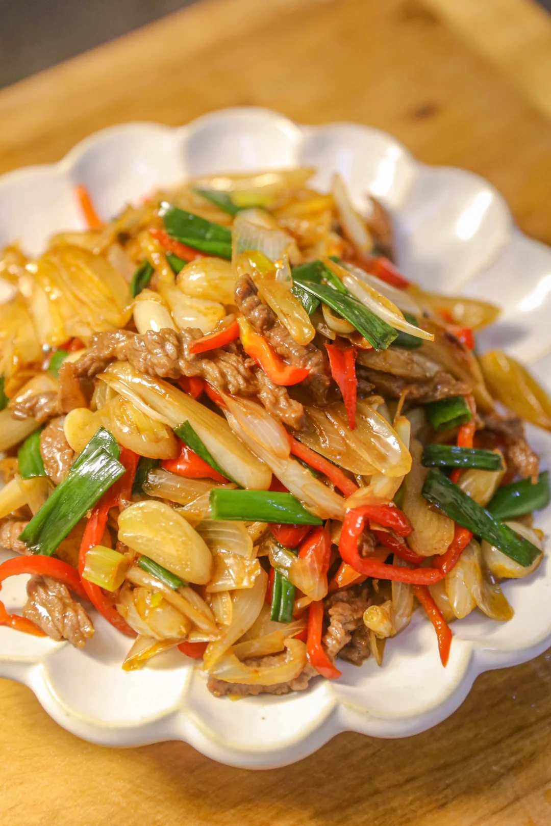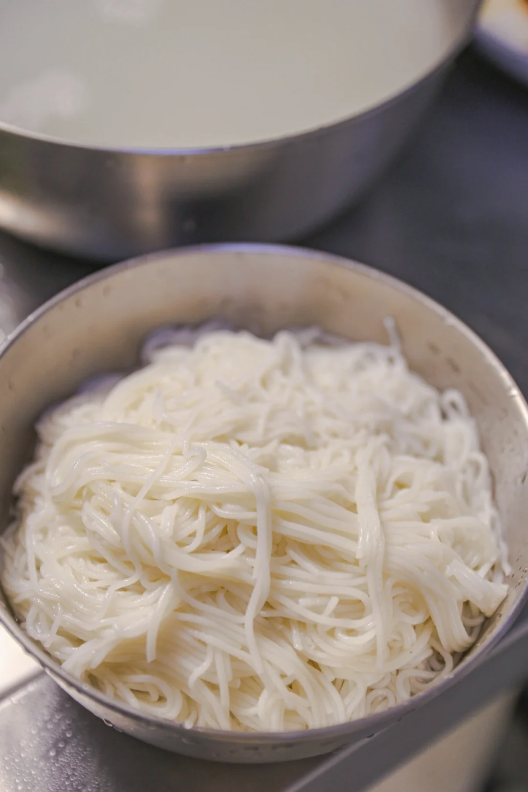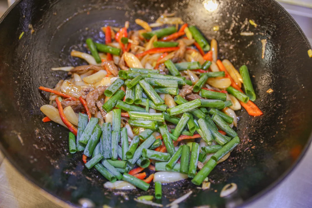 牛肉条爆炒藠头片: 1:牛肉切成丝,加入生抽、食盐、白胡椒粉、玉米淀粉、黄酒抓匀,放入菜籽油锁住水分,腌制20分钟。 2:锅烧热,加入腌制好的牛肉条炒变色,盛出备用。 3:锅中再次加菜籽油,放入葱姜蒜爆香,加入藠头片,翻炒变色,加入炒变色的牛肉条,放入红椒条,翻炒均匀,出锅放入葱绿段即可。 碗中加入高汤,把面条放入,加入炒好的牛肉藠头即可。