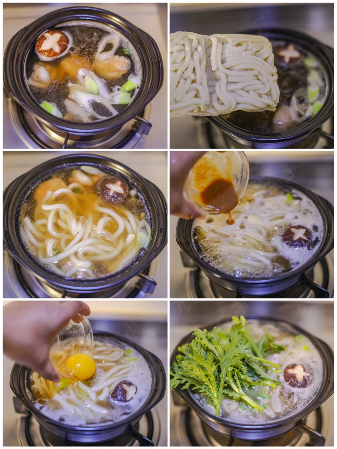 [红色心形R]砂锅里倒入日式高汤,加入满满的食材和乌龙面,非常好吃又很有满足感,天气冷的时候特别适合吃。
