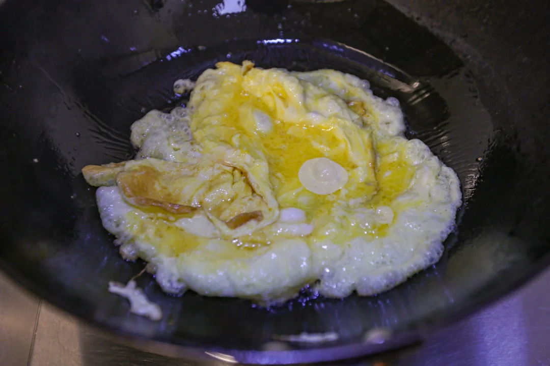🌟2.锅中烧热加入食用油,先把鸡蛋炒散,盛出来备用。