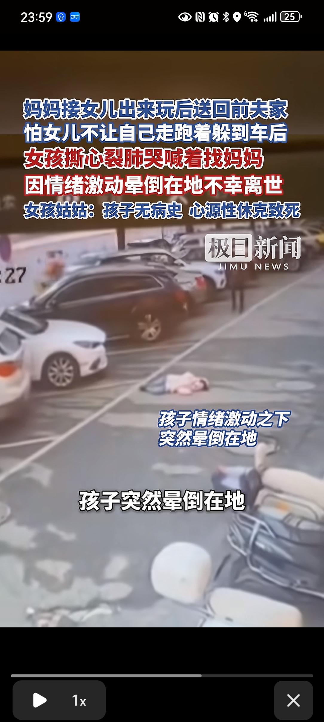 传说中的“难受死了”,这一刻具象化了。不要让人太难受,真的太可怕。 湖南一个女孩父母离异,孩子很跟着父亲家,这天妈妈接孩子去玩,玩好了后,又将女孩送回前夫家,妈妈担心自己离开的时候,孩子会吵闹,会不让她走,于是就趁着女儿不注意,偷偷跑出来了,躲在一车后面,女儿看妈妈不见了,心急如焚,舍不得妈妈,就跑出来喊妈妈找妈妈,但是妈妈不现身,因为怕一现身孩子又得哭闹很久,就在这时,悲剧发生了,找不到妈妈的女孩因为着急和难过过度,直接倒地,因为抢救不及时,孩子身亡。 孩子姑妈说,孩子平时很健康没有基础病,是心源性休克猝死。其实但凡妈妈回头看一眼,或者但凡跟着孩子爸爸出来悲剧都不会发生。 每个孩子的眼里,妈妈就是她的全世界,妈妈不要她,心都碎了。 让我想起了被电话诈骗大学学费的那个女孩子 倒在了和爸爸报案后回家的三轮车上 也是这样,哀莫大于心死。 看到这个新闻我起很气的,但凡有一个靠谱的家长,关注她的情绪的,不会有这么惨的。孩子撕心裂肺的叫妈妈,隔着屏幕我都忍不住流泪,孩子都那么大了,好好沟通,约定下次见面的时间不可以吗?我真的很想对女孩的妈妈说,为什么要这样离开孩子的视线,你们婚姻破裂,最难受的是就是孩子了,现在这种结果是你愿意看到的吗?孩子的父亲也是,肯定要跟过来看女儿的情绪啊!