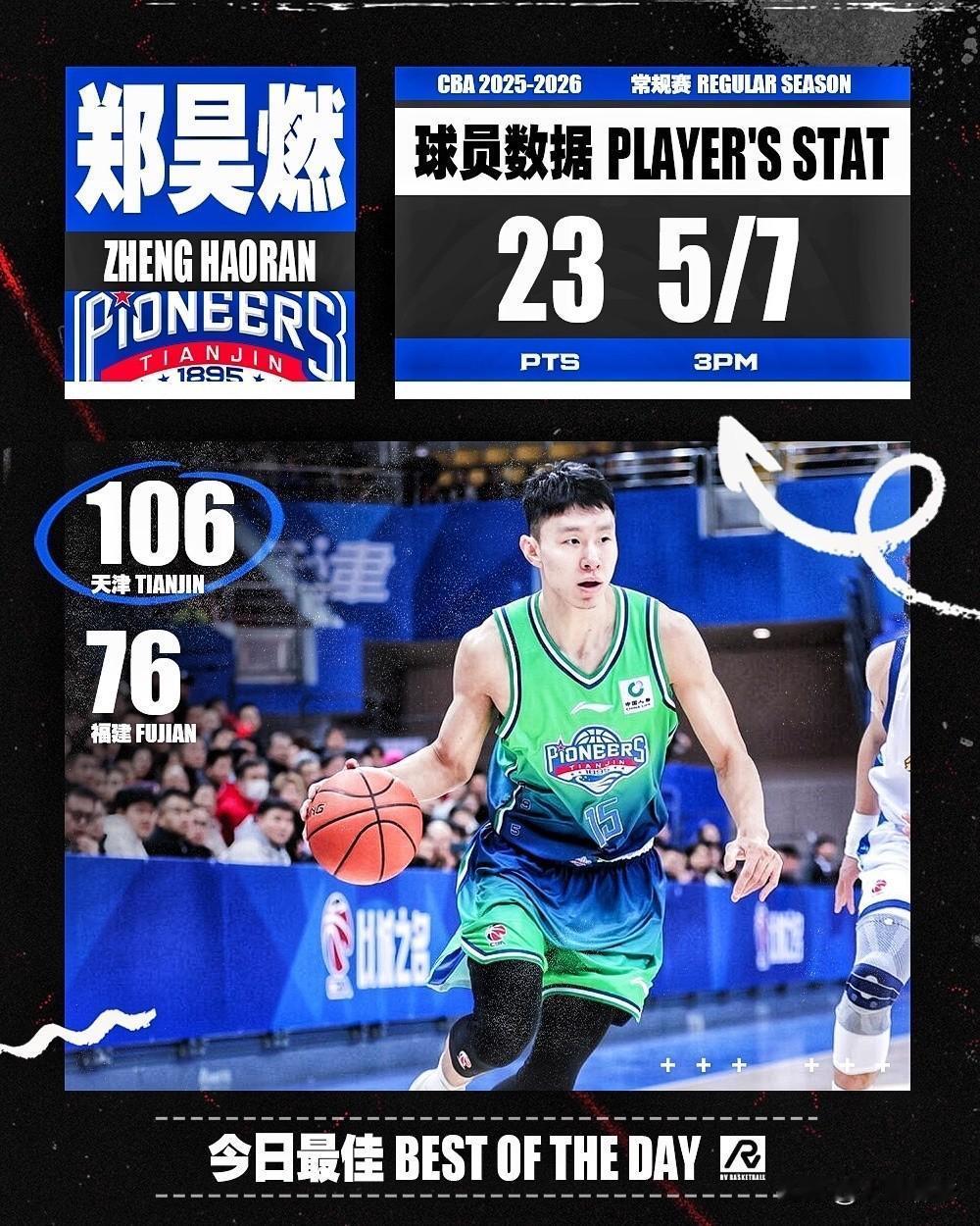 单节轰下17分,堪称“奇兵”!在刚刚结束的天津男篮主场106:76拿下福建的比赛中,天津男篮惊现“奇兵”,郑昊燃仅首节就独得17分,命中五记三分球,为球队立功!另外天津先行者核心球员也发挥出色,哈姆雷特33分9篮板6助攻,林庭谦20分5篮板8助攻2抢断!最近的CBA真是人才井喷,但“千里马常有,但伯乐不常有啊”,希望郭士强指导慧眼识才!