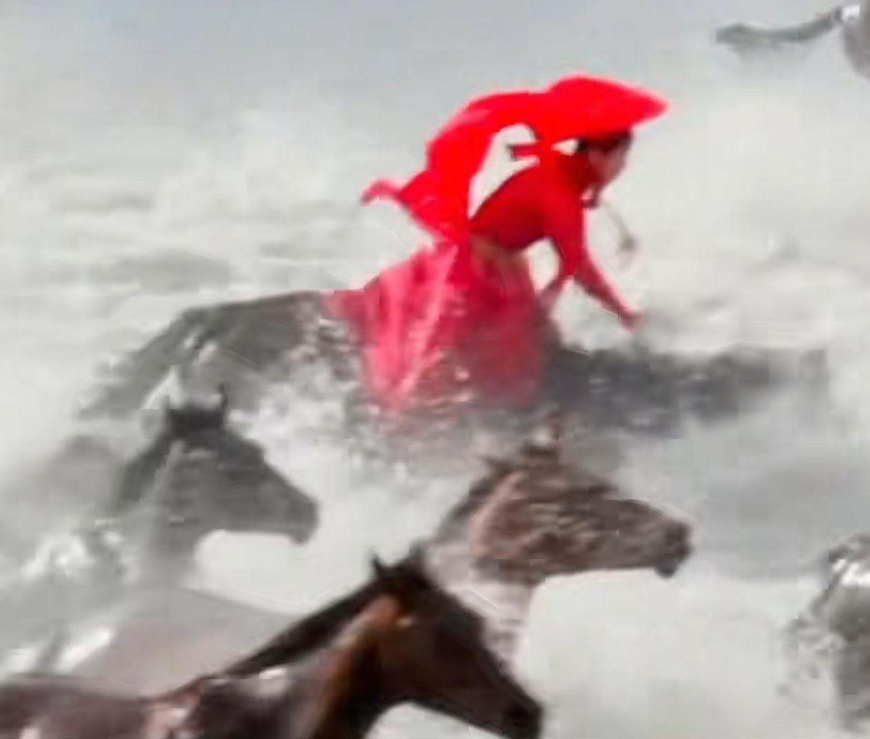 “已经好几次从马背上摔下来了,只是这次正好被无人机拍到了。”在接受红星新闻记者独家专访时,贺娇龙说,6月21日,她就打算拍摄“天马浴河”,但那天先在天马文化园拍摄时从马上摔下来,头很晕,拍摄就取消了。