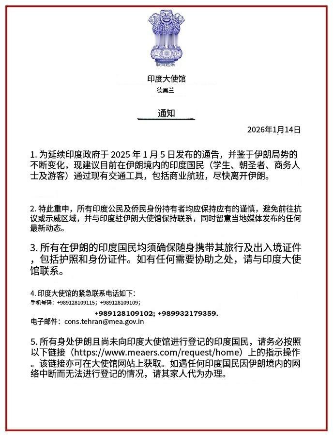 突发! 印度驻德黑兰使馆发布公告, 要求印度公民尽快离开伊朗! 这是一个明显的