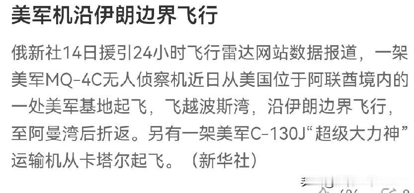 最新消息! 综合多方消息,美军在伊朗的火药味越来越浓了!俄新社:美军机沿伊朗边界