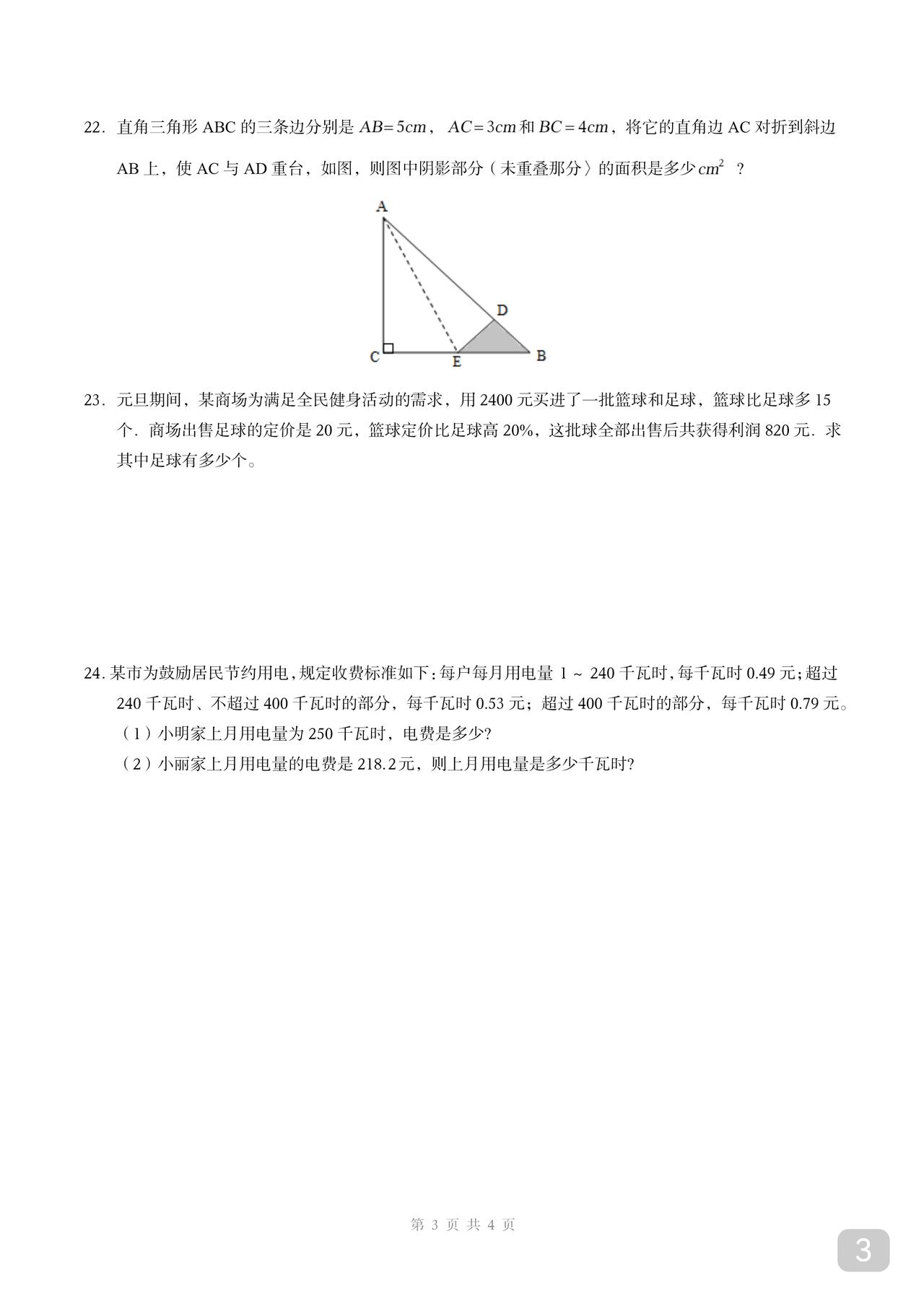 初二数学上学期期末考试精品复习卷,勾股定理和二次根式,质量很不错的一