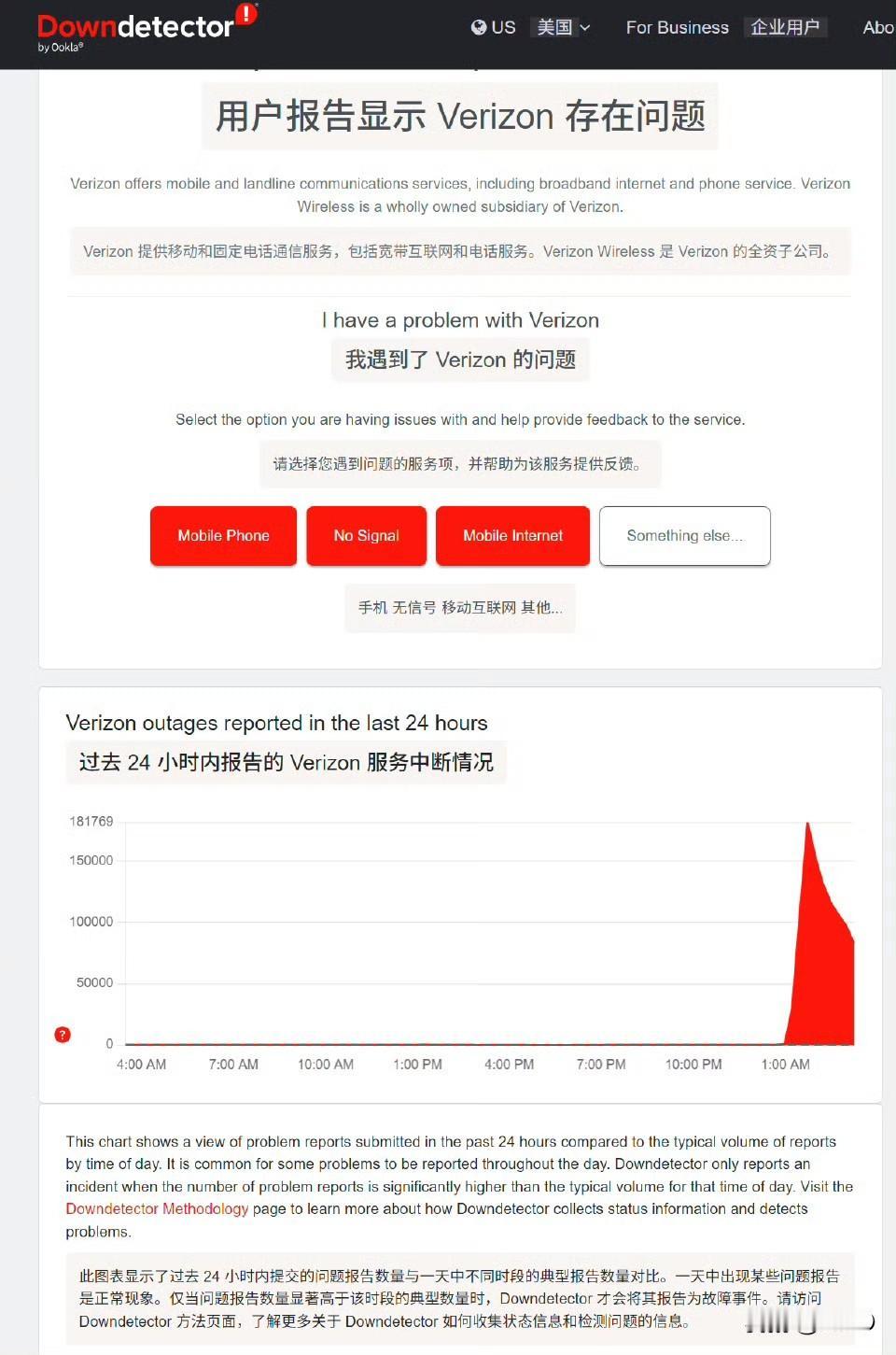 当前,美国 AT&T、Verizon、T-Mobile 等主要运营商正遭遇大规模的全美性网络中断,范围覆盖美国大部分州,导致用户无法拨打和发送短信至其他运营商的网络。美国各地的 Verizon 用户自东部时间 1 月 14 日中午起报告了大规模服务中断,DownDetector 记录了超过 17.1 万份报告,主要涉及移动信号丢失,包括 AT&T 和 T-Mobile 在内的其他主要运营商的客户也经历了服务中断,但程度远低于 Verizon。Verizon 在社交媒体上证实了此次中断,表示正在努力恢复服务。影响的用户数量不是特别多,但是覆盖范围特别广。太抽象了。