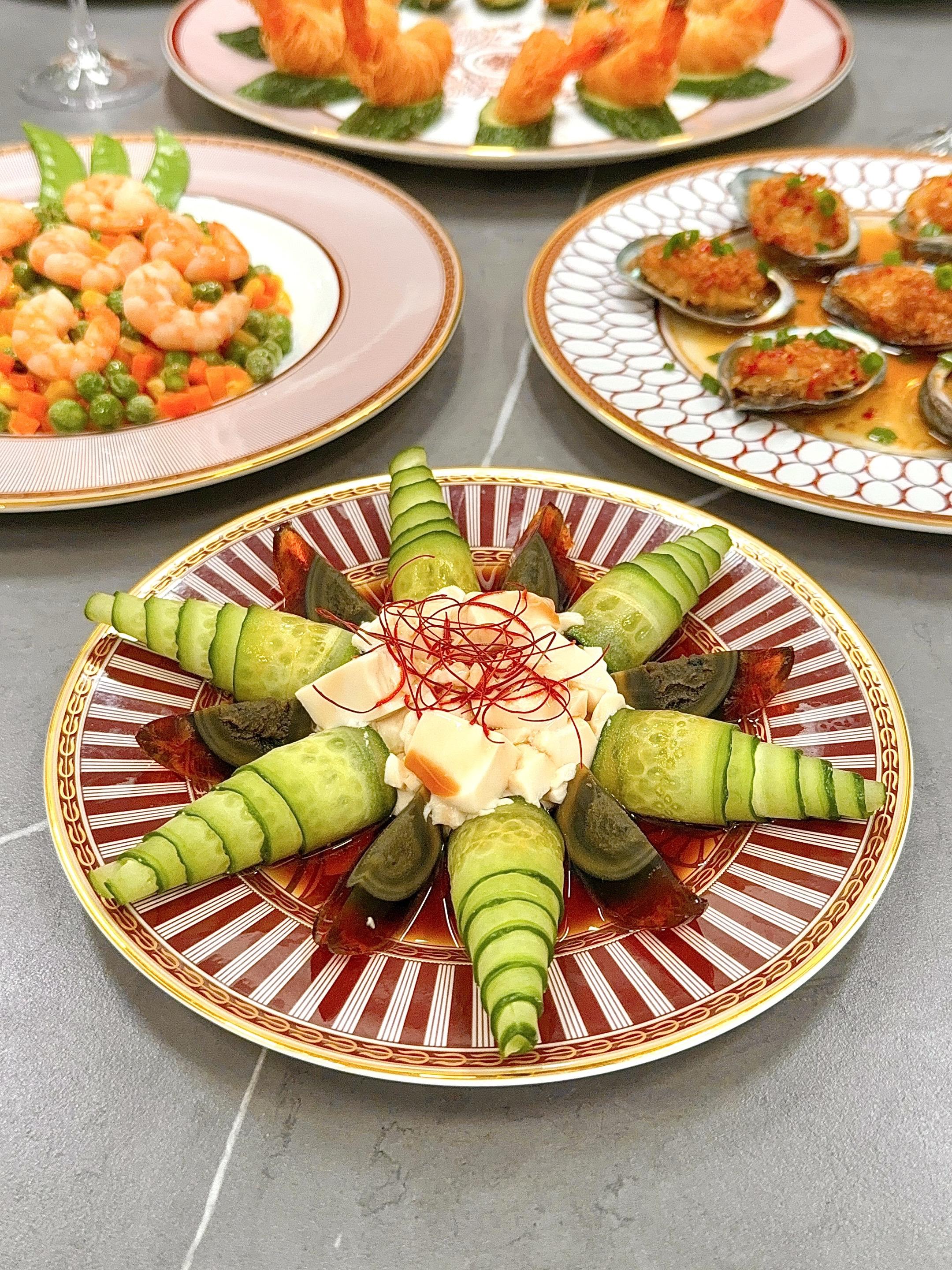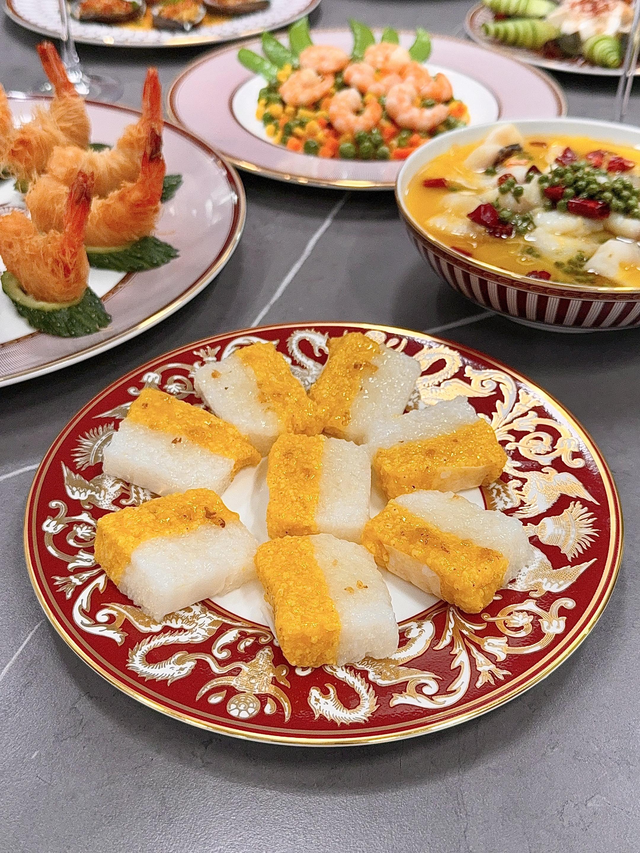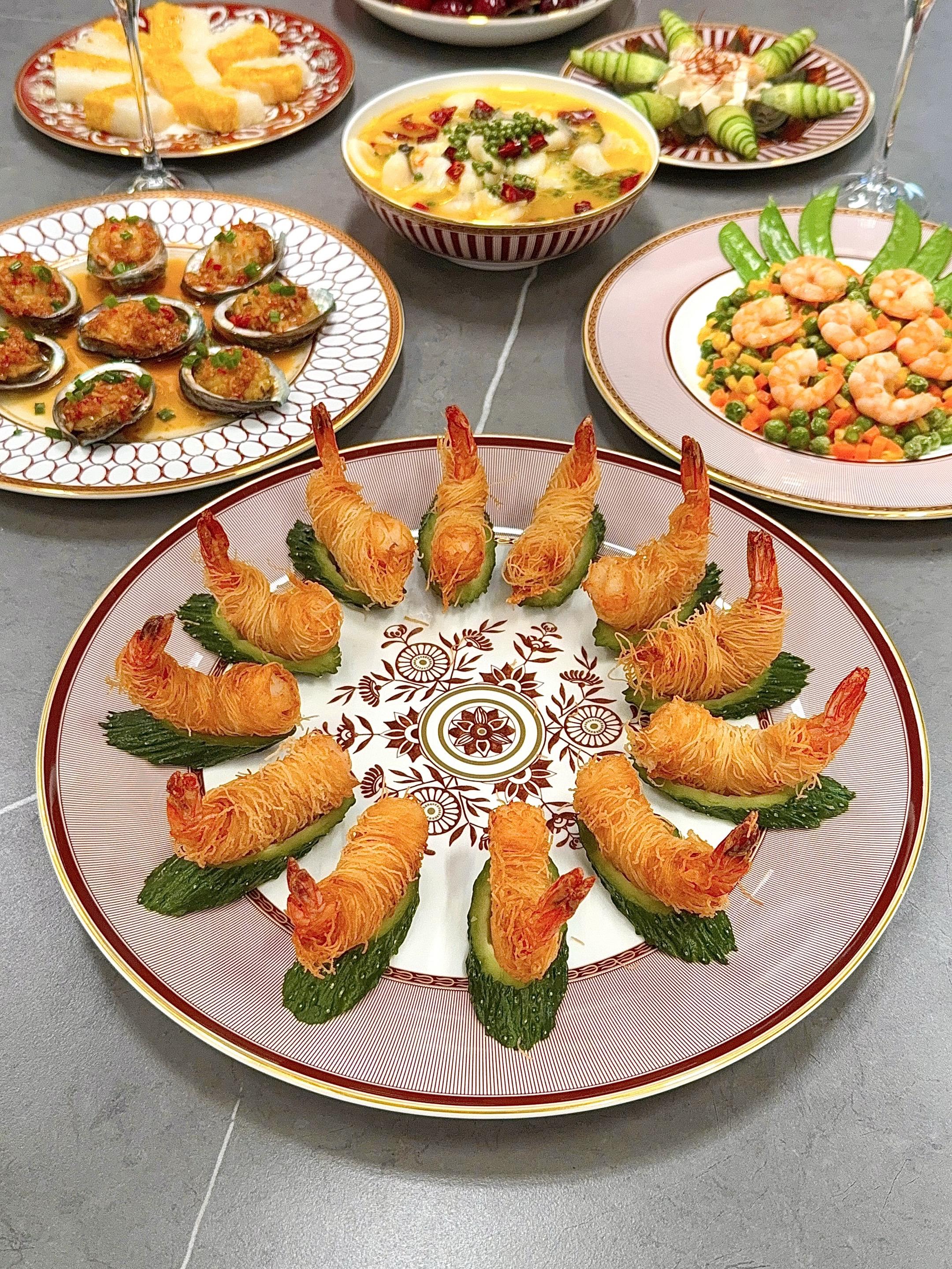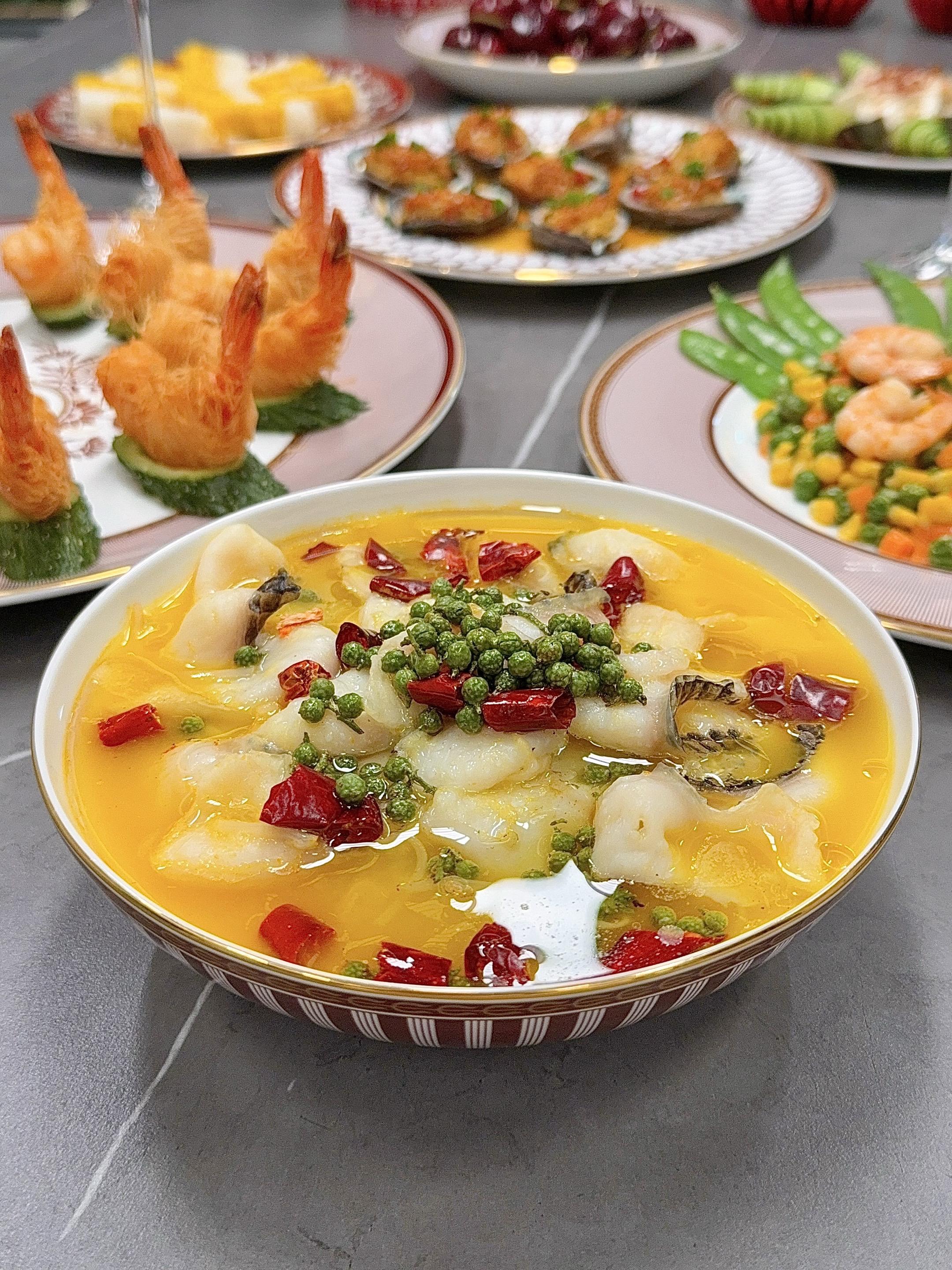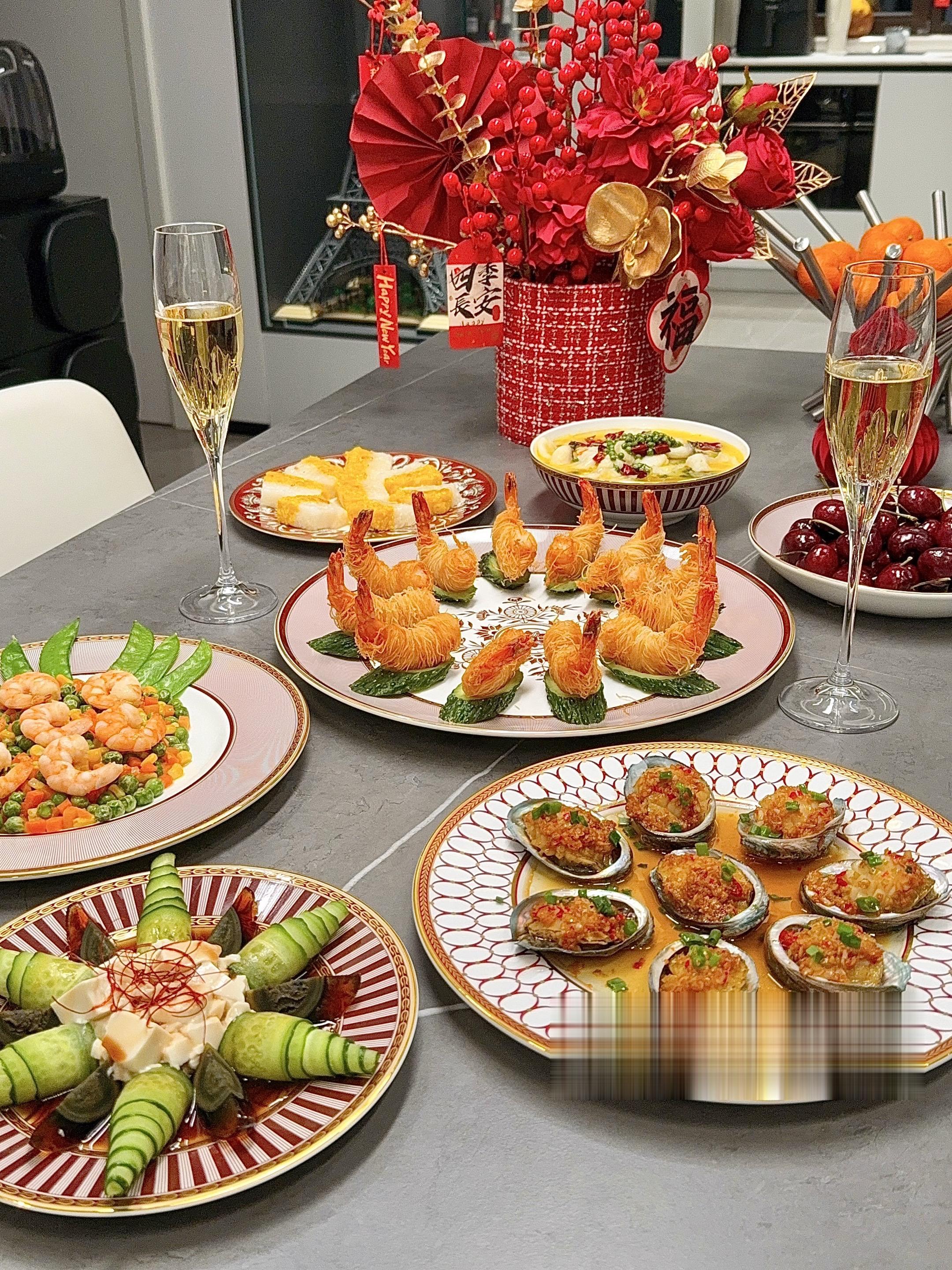 家的年味,藏在餐桌的仪式感里 🏮。对我而言,真正的年味,不在于喧嚣,而在于与重要的人,精心张罗一餐饭的专注过程。窗外的热闹是背景音,厨房里的慢条斯理与餐桌上的盈盈暖光,才是属于我的仪式感。 🧧新年菜单分享: ❶【金银满屋·千丝万缕虾】 ❷【招财进宝·蒜蓉蒸鲍鱼】 ❸【锦绣前程·什锦虾仁】 ❹【年年有余·酸汤鱼片】 ❺【金玉满堂·黄米凉糕】 ❻【团圆福禄·皮蛋豆腐】 🍒水果:鸿运当头·车厘子