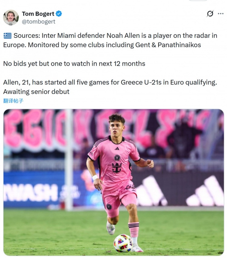 TomBogert透露,一些欧洲俱乐部关注迈阿密国际后卫阿伦,其中包括根特和帕纳辛纳科斯。