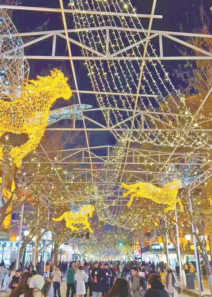 步入中央大街,仿佛闯进一个用光影与冰雪编织的童话,以“冰雪迎宾、瑞马迎新”为主题的灯饰,化身为故事的讲述者。5处主题景观与10余处惊喜点位,将科技的光影编织进欧陆风情的建筑轮廓中。“我们希望灯光不止于照明,更能与百年建筑‘对话’,让历史在光影中焕发新生。”管委会相关负责人介绍。来自深圳的摄影师陈东一边调整三脚架一边赞叹:“光影顺着老建筑的线条流淌,像给历史披上了会发光的雪绒外衣。”