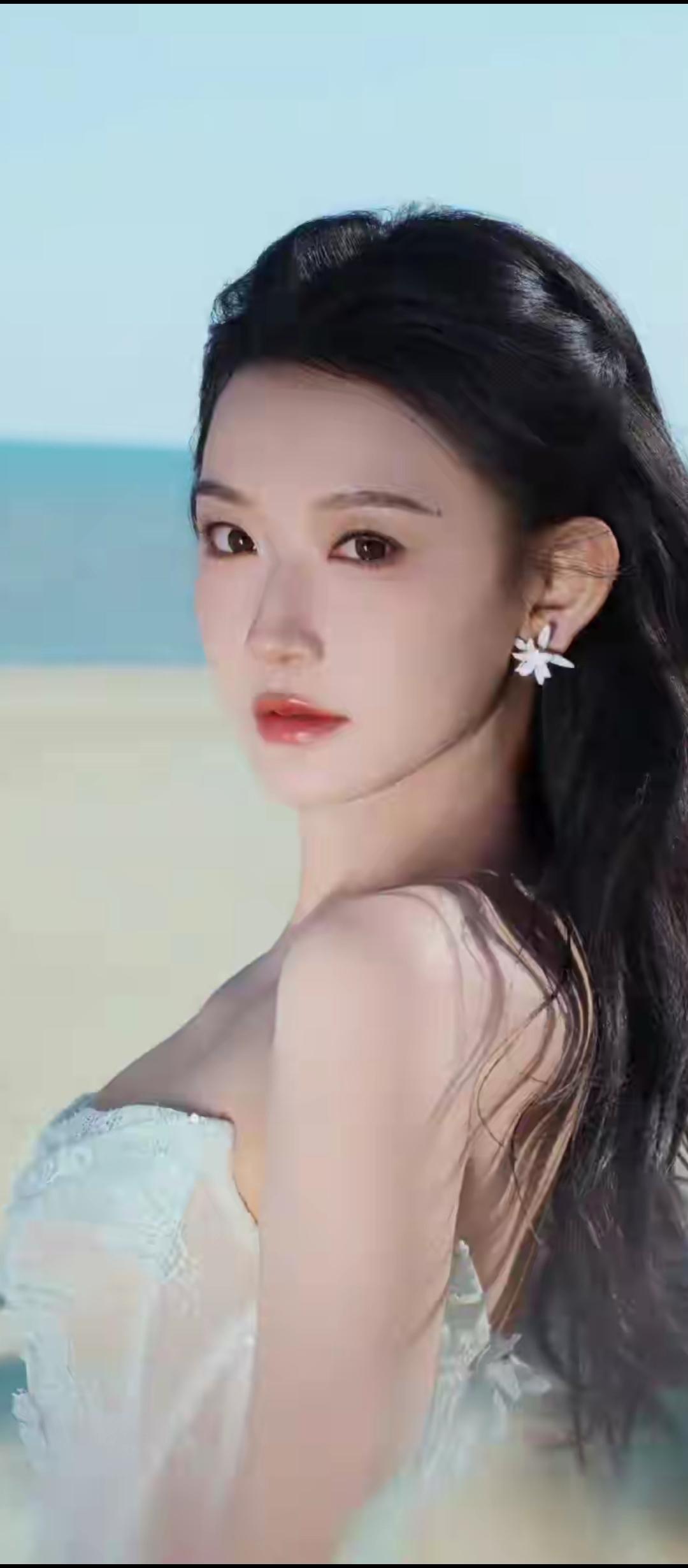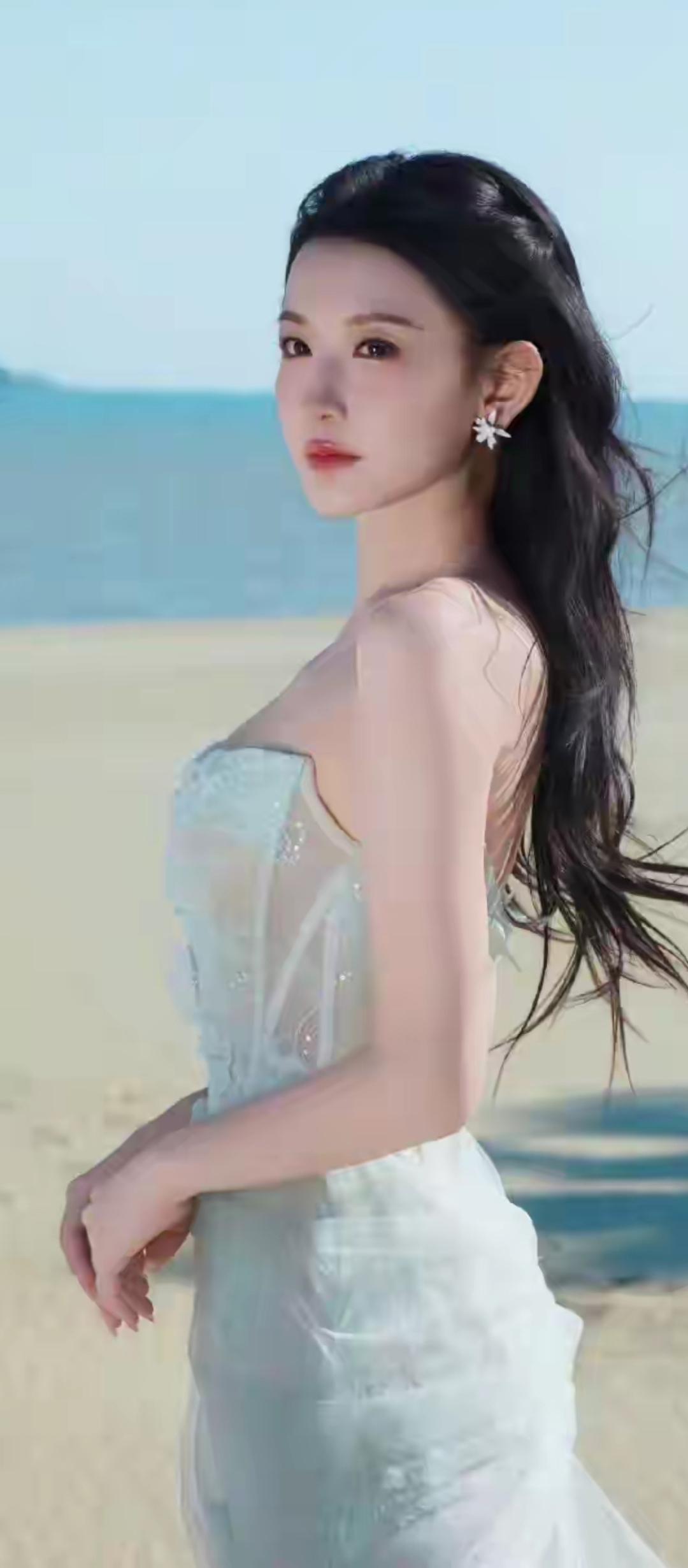 粉旗袍融海畔风澄澈的蓝天拥着碧蓝海浪,沙滩上一袭粉旗袍似揉碎了春日的桃花,