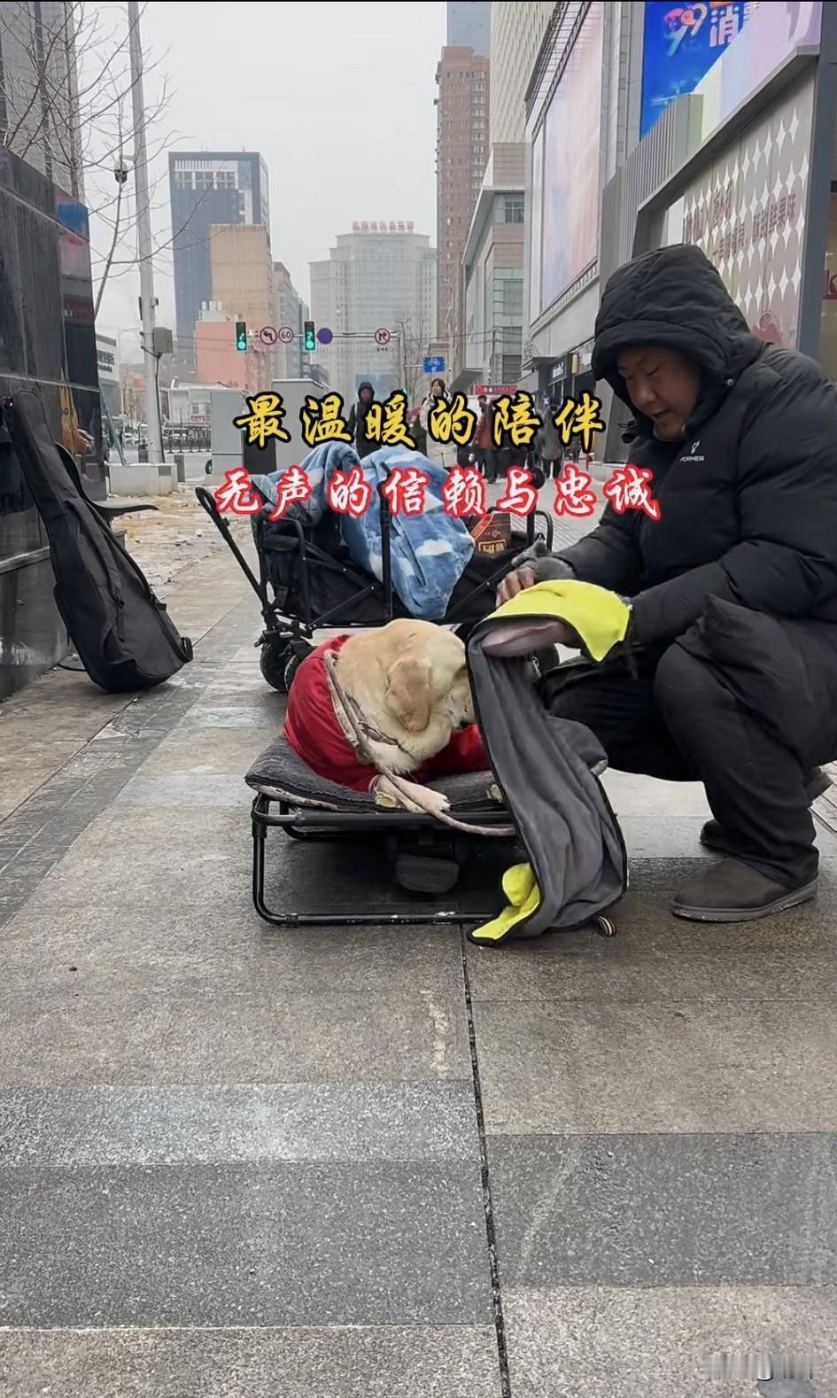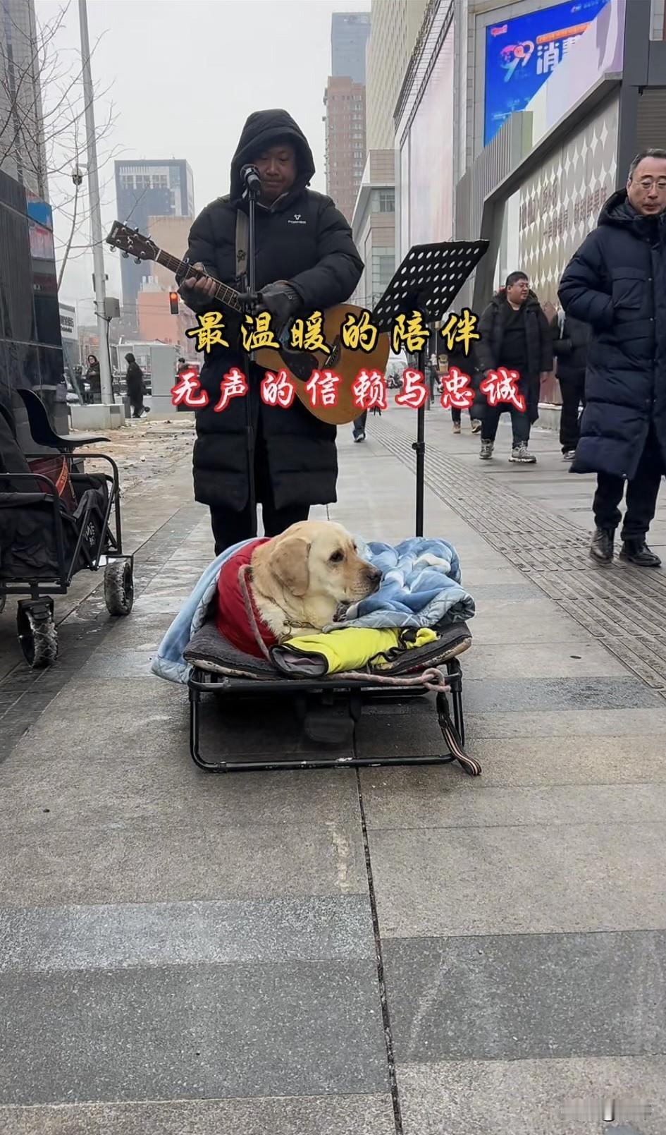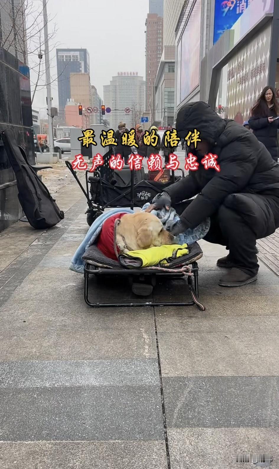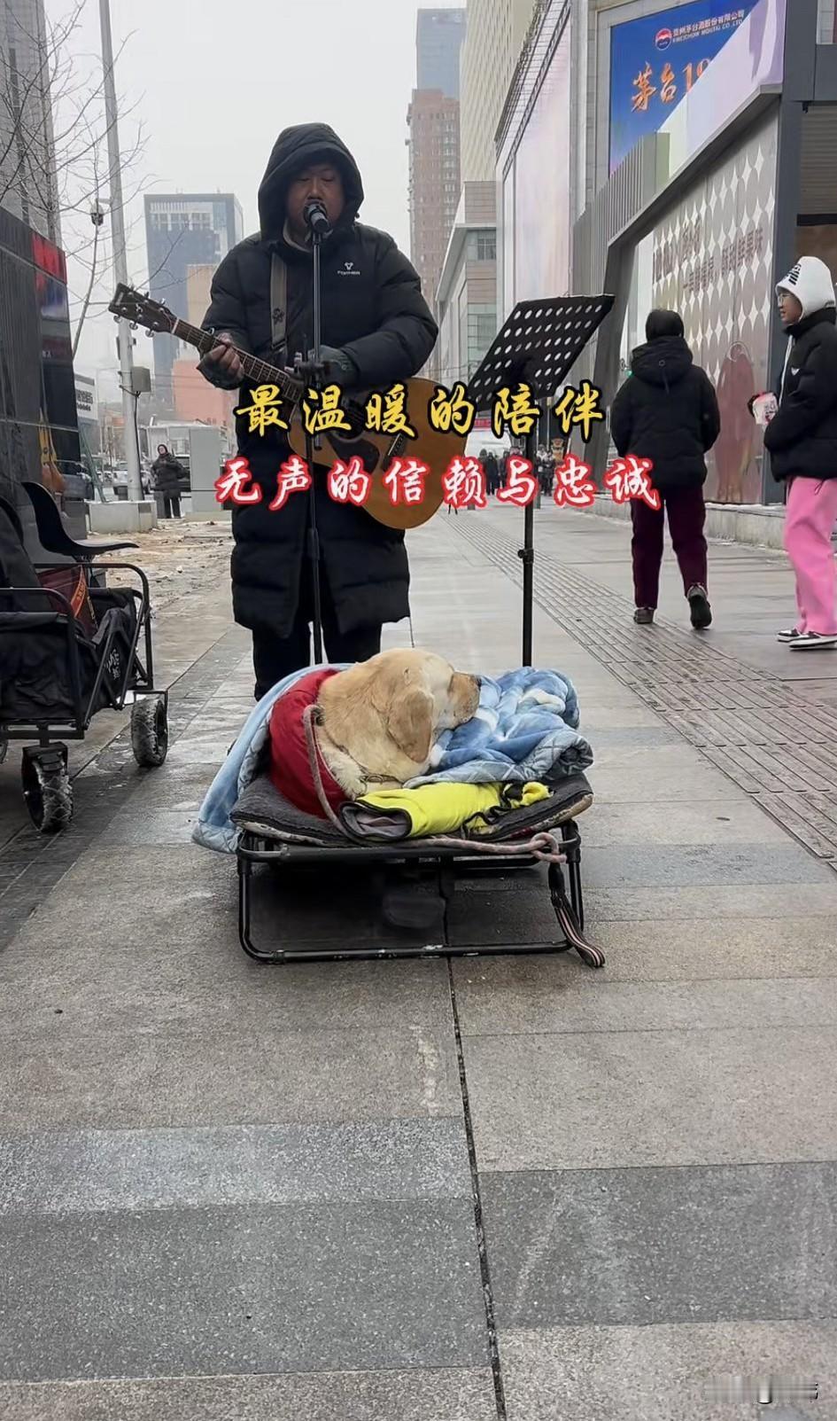 泪目了!这天一位小姐姐去逛街,当她走到一个广场的时候,看到了温馨的一幕,一位流浪歌手正在给他的狗狗穿衣服铺床盖被子,让狗狗可以安心的躺着休息,在这寒冷的冬天可以避免狗狗受冻,虽然流浪歌手也许在流浪,可它的狗狗绝对不是流浪狗,而是有主人的。 而对于狗狗来说,它只有忠诚和信赖,狗不嫌家贫,也许流浪歌手的经济条件不是特别好,但是他如此疼爱狗狗,狗狗一定会非常幸福的!这是最温暖的陪伴!小姐姐看了非常感动,于是掏出一些钱递给了歌手,希望他们能够过得好一些!
