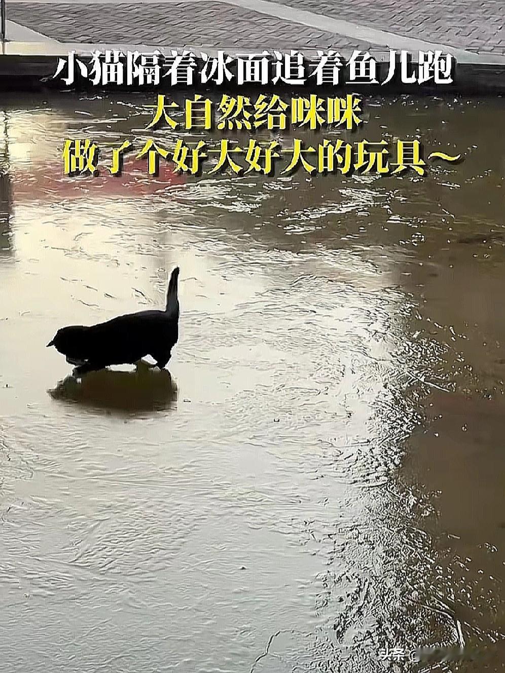 哈基米狂喜!大自然馈赠的“巨型猫抓板搭配鱼玩具”谁能抵挡得了啊? 看:这只四脚踏白的小黑猫乐翻天啦!江苏的公园池塘结冰,瞬间就成了小猫的豪华娱乐场! 冰面下鱼儿游过,它就跟装了弹簧似的蹦哒过去,小爪子在冰面上“哒哒”地刨着,那眼神亮的像是发现了宝藏似的。 跑着跑着脚还会打滑,一个趔趄后又立刻稳住,活脱脱一个玩疯了的小朋友,把“猫界显眼包”的特制牢牢刻在了身! 这哪里是在冰面上追鱼呀,分明是大自然为哈基米开启的“快乐盲盒”!谁看了不心生羡慕?咱打工人要是也有这么个能随时尽情玩耍的“玩具”,那压力不得原地飞走? 猫抓板 黑猫 溜冰高手 结冰