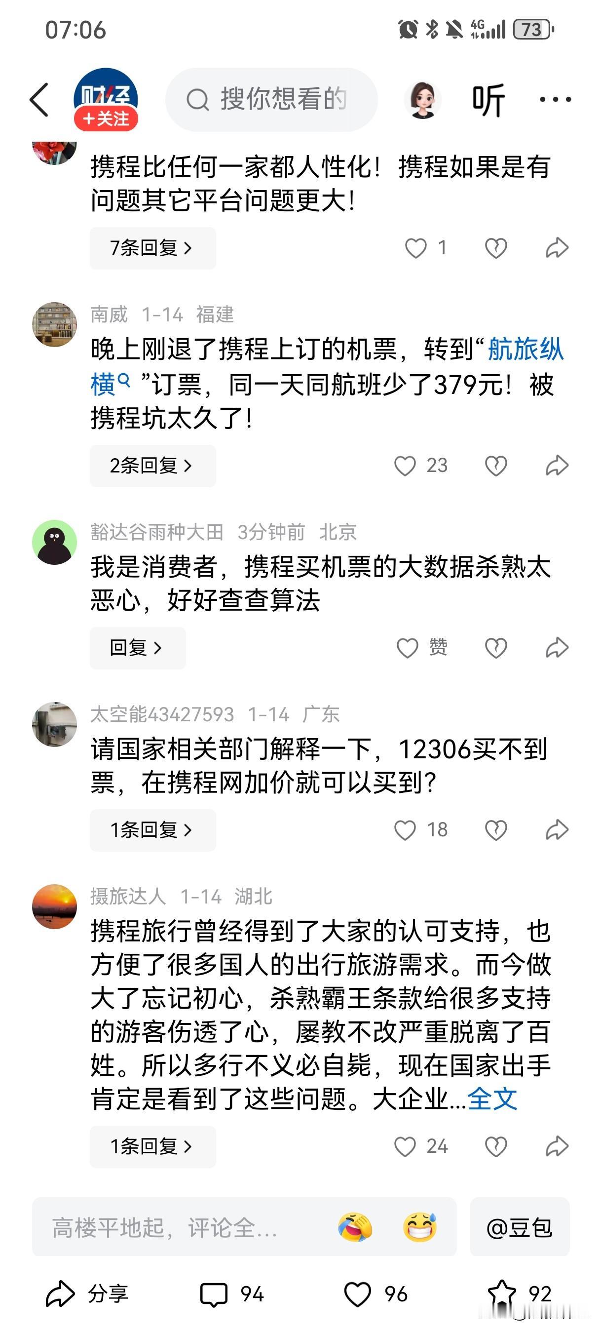 你被携程坑过吗?携程 大概率是“有”! 订机票时,大字加粗的“低价”背后藏着强制捆绑的几十元“全能保障包”! 搜同一家酒店,价格比新用户贵出几百,美其名曰“会员权益”! 提前三天取消行程仍扣半费,突发情况无法出行竟全额不退! 这样的平台除了坑人还有啥用? 大家还有哪些被坑的经历?评论区说说~