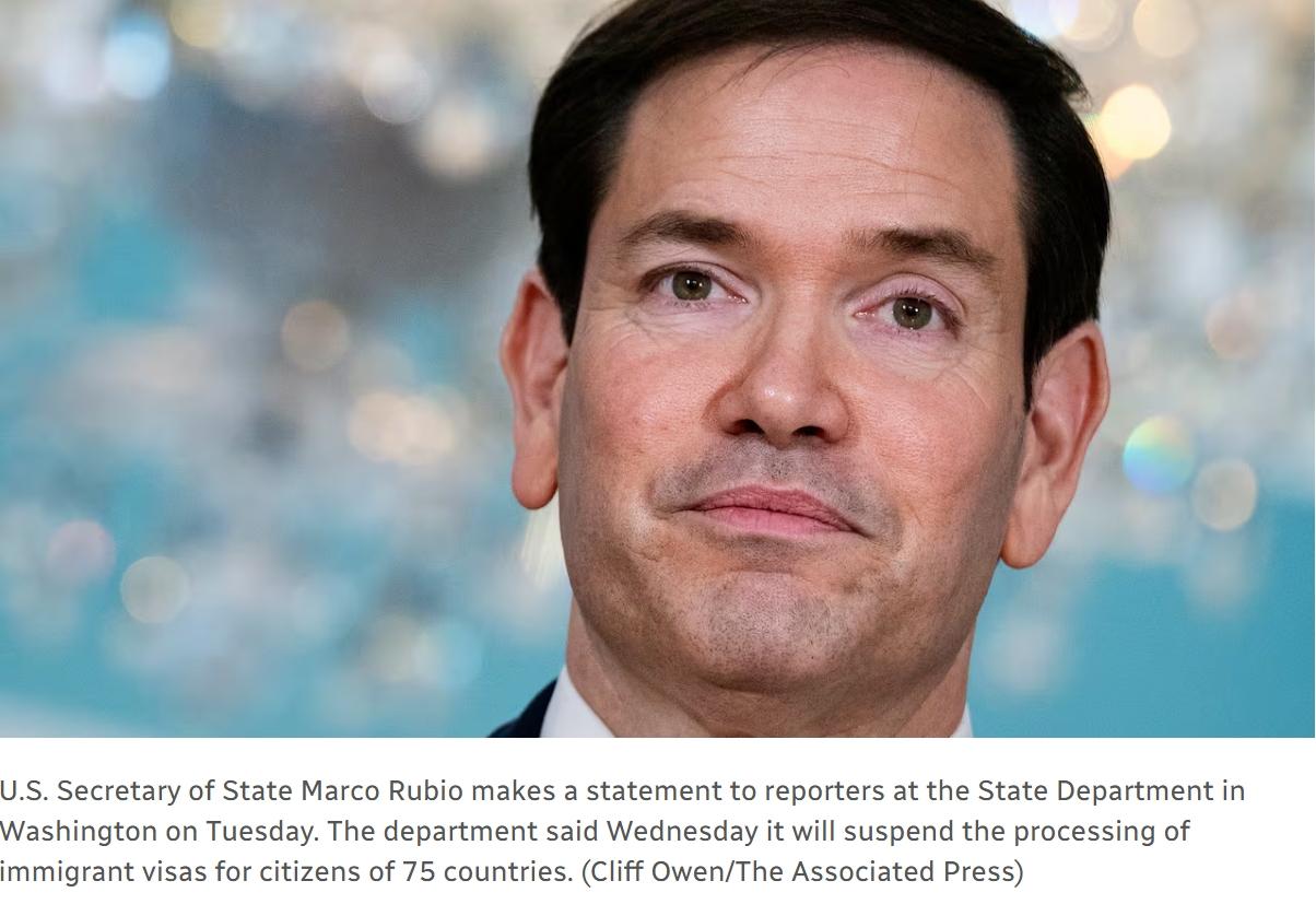 特朗普停止了75个国家的移民签证申请 美国国务卿马可·鲁比奥周二在华盛顿国务院向