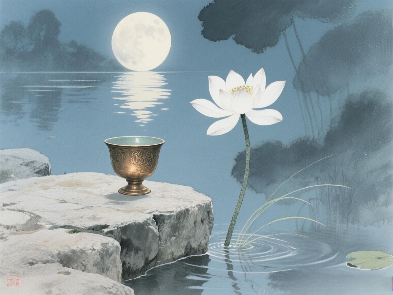 上联:花前漫步诗心醉, 下联:月下烛影画中游, 下联:云间独坐意自闲。