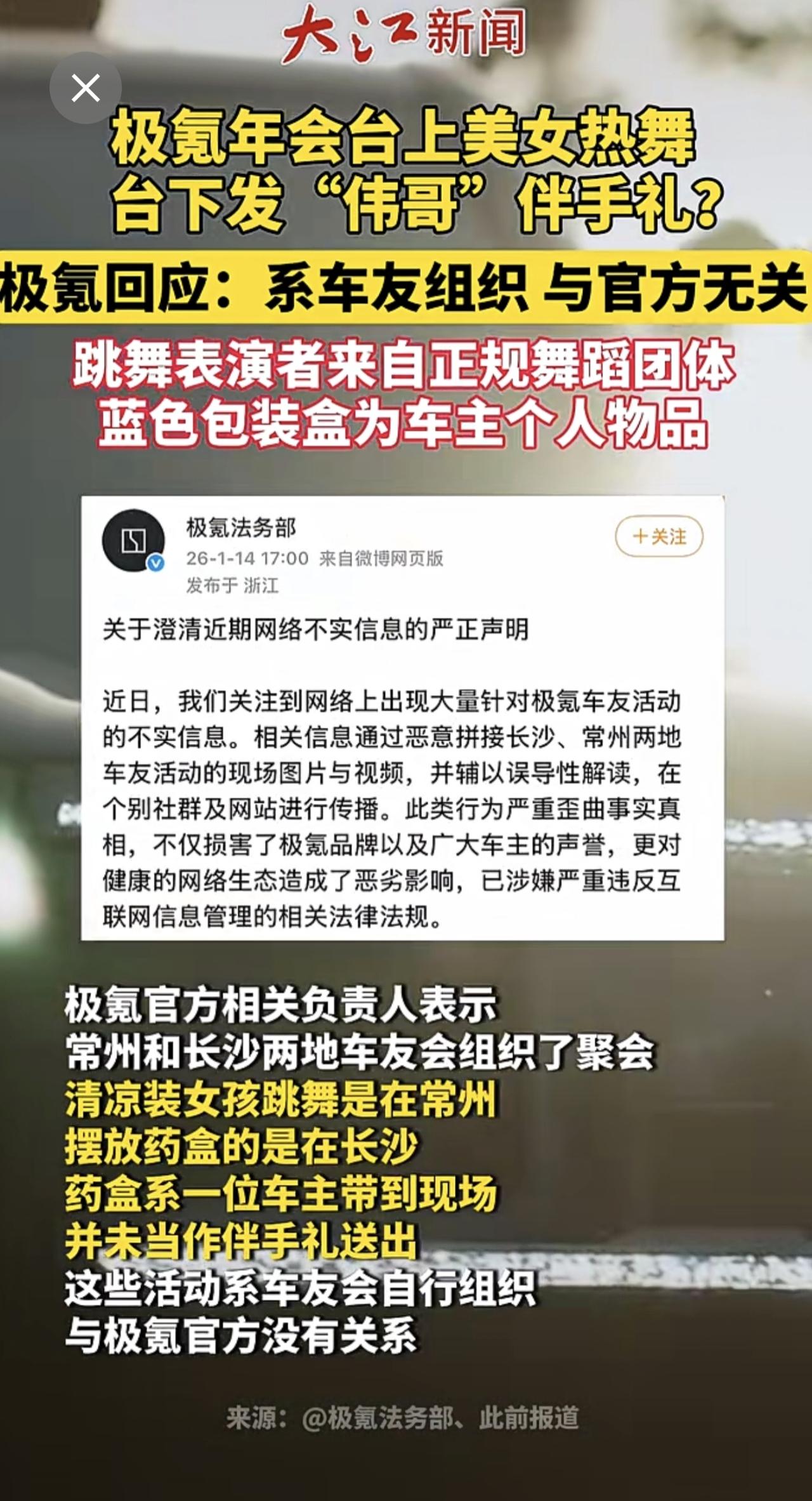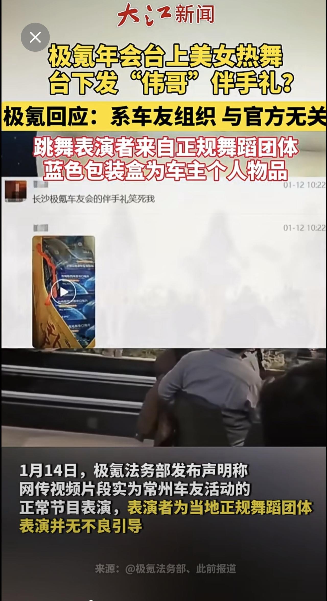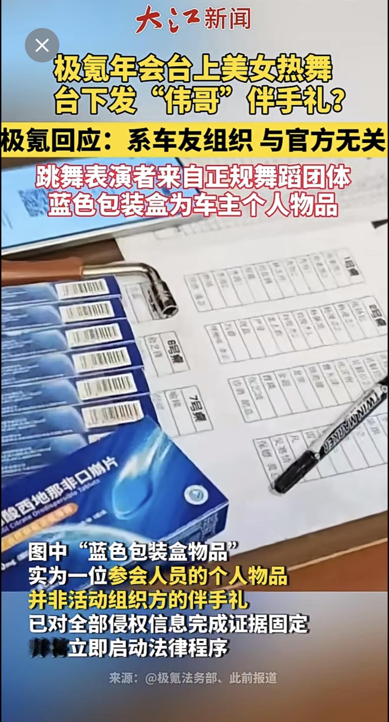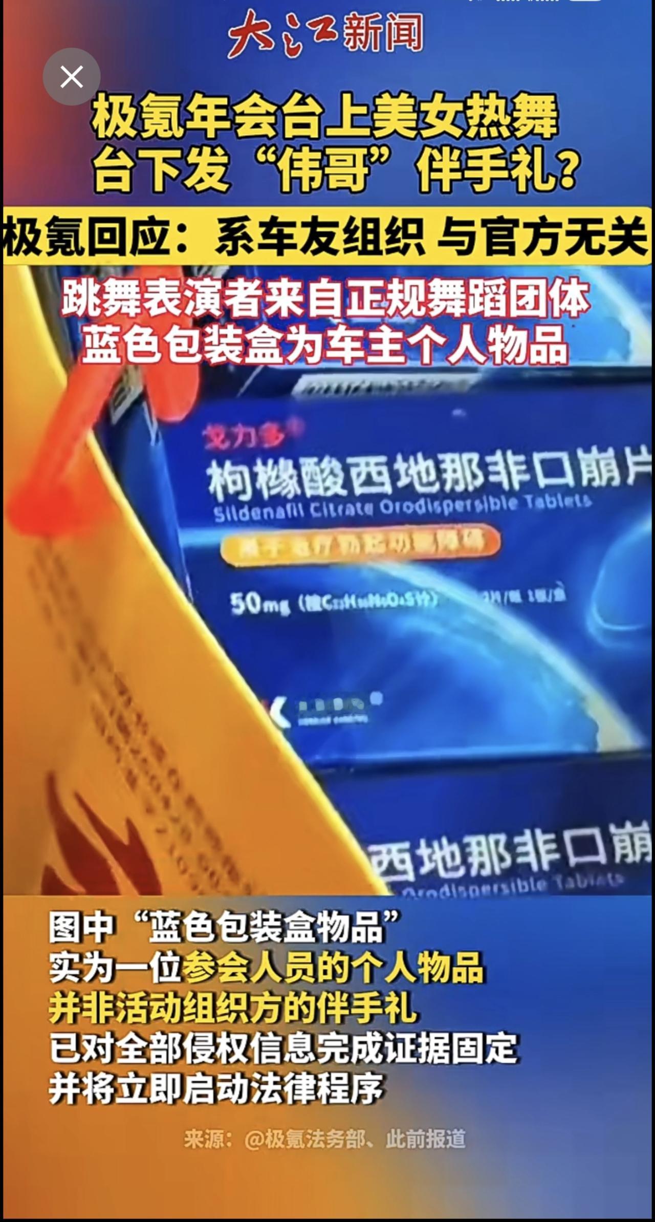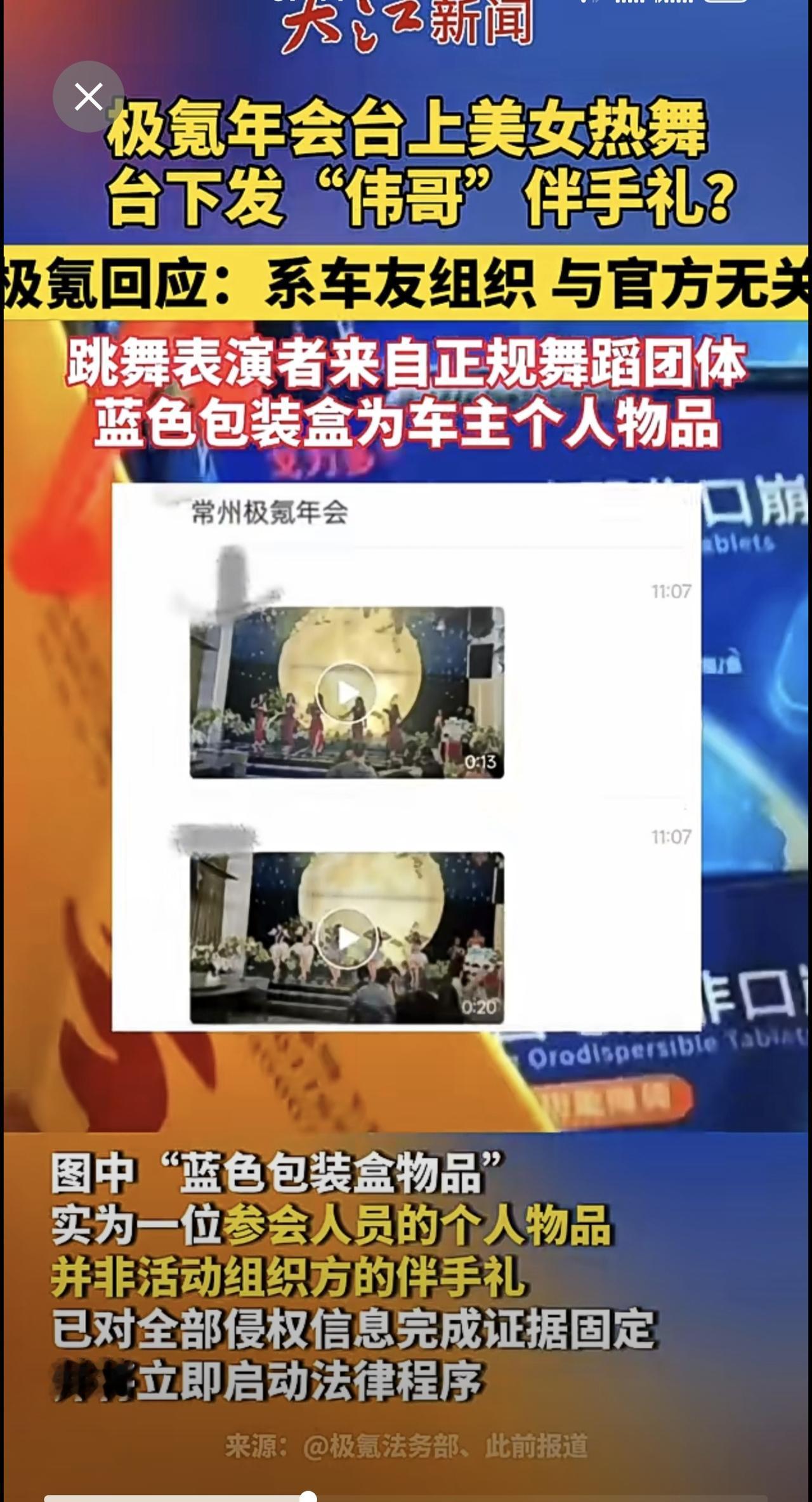 年会活动被指发“伟哥”、请美女跳舞,极氪严正声明:蓝色包装盒为车主个人物品,表演为正规舞蹈。