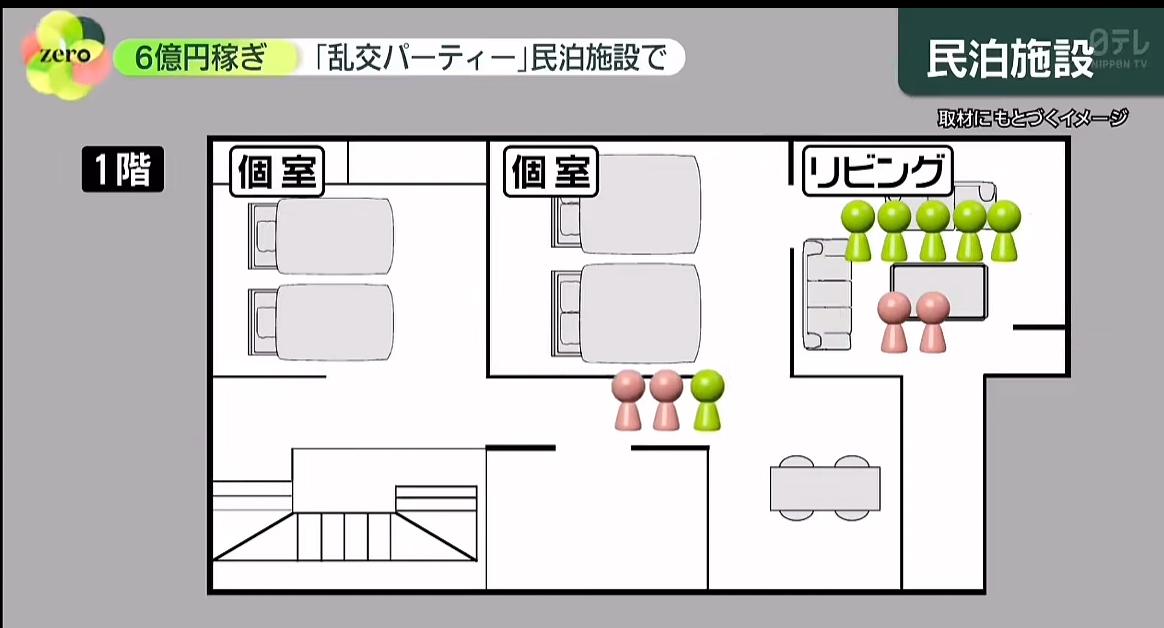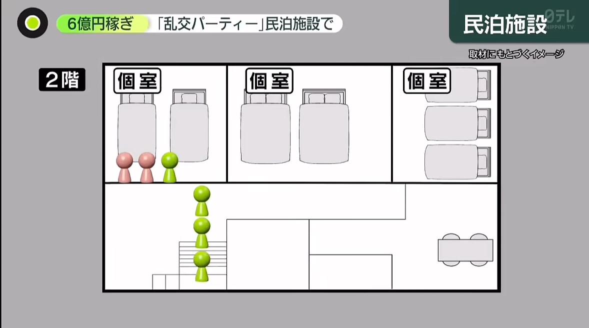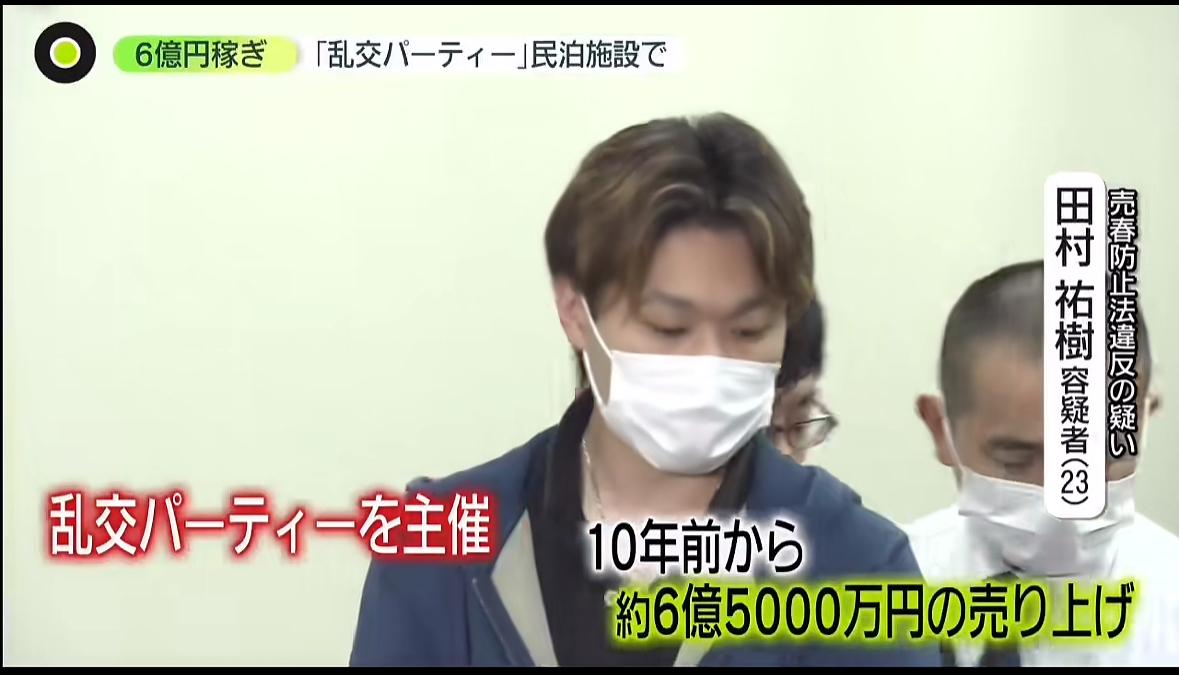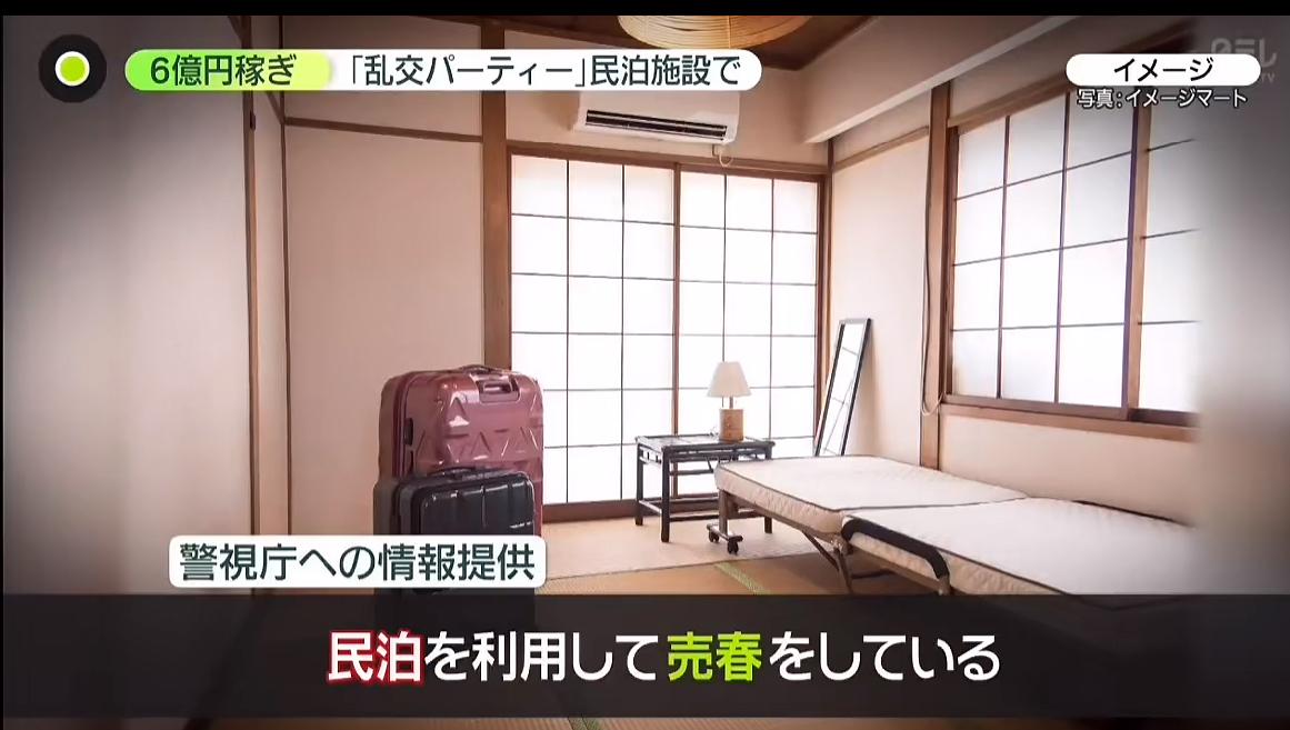 2025年7月警视厅收到举报有人在新宿民宿举办多人运动,警察行动抓捕了5人,据悉该活动10年前就已经开始,每月15次,主办方营业额预计6.5亿日元。