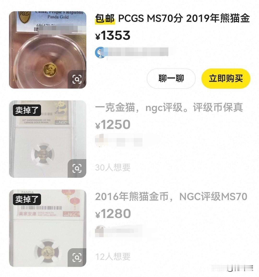 这是坐火箭了吗? 原本想买几枚一克熊猫金币,等春节时送人,感觉比送红包有范,就在某鱼上转悠,收藏了几个,心想有时间时就和老板聊聊,便宜点就拿下。 结果因为手头事情多忙忘了这事,好嘛!今天早晨打开某鱼一看,收藏的几枚熊猫金币都卖掉了,卖价1280元,只剩下一枚标价1353元的还在,过去一问价,议价免开尊口,说有没评级的可以优惠。 这个后悔呀!贵金属这是坐火箭了?一天一个价了呀?金熊猫币 回收金银熊猫币 熊猫铂币 熊猫套装金币 两万金币 撸金币 贵金属熊猫币